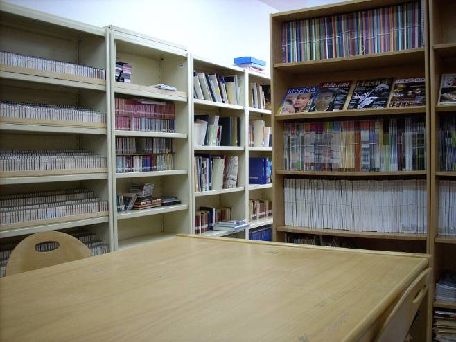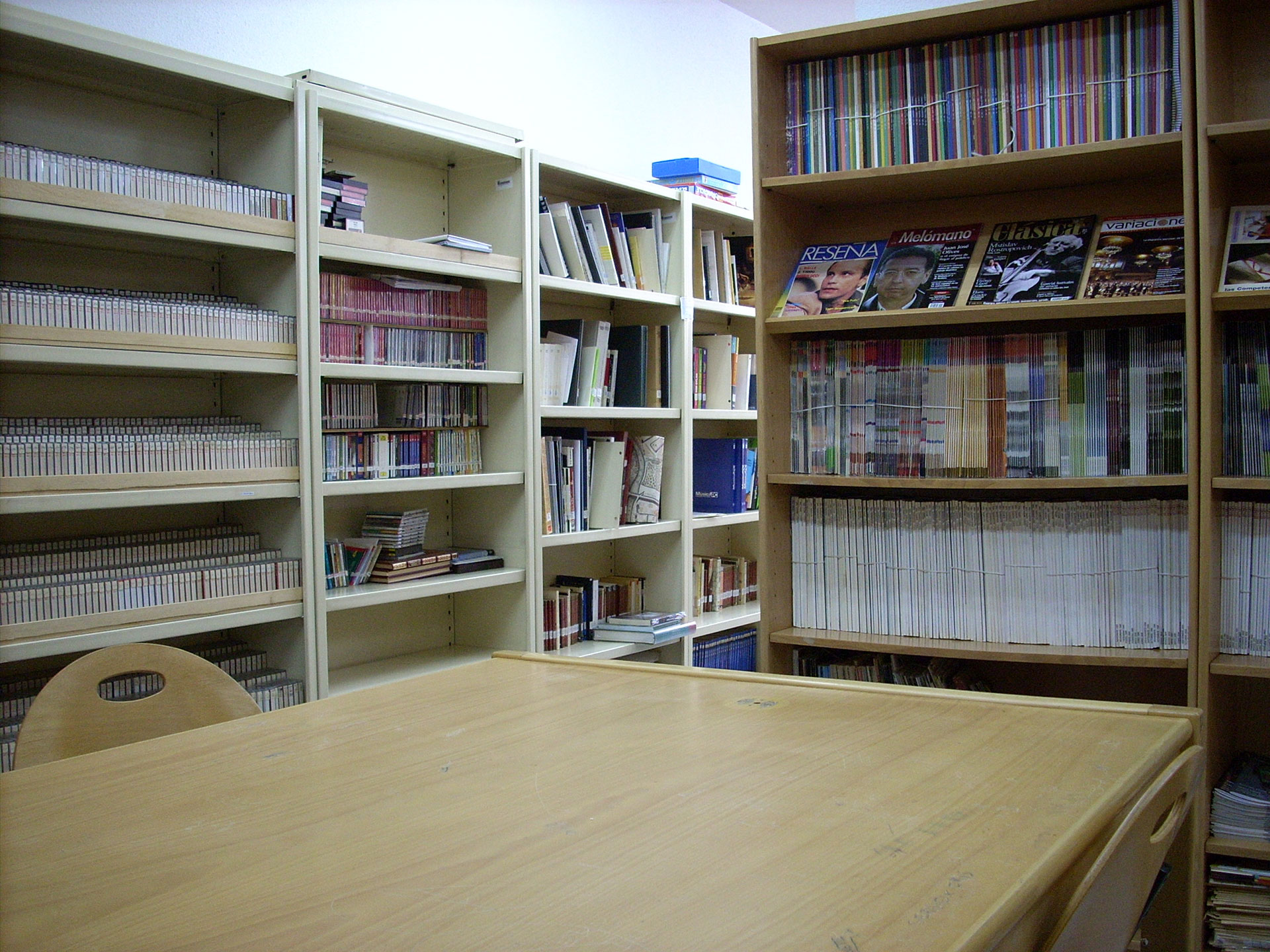 Material de Biblioteca con libros, partituras, CDs, vinilos y un equipo informático para el Bibliotecario.