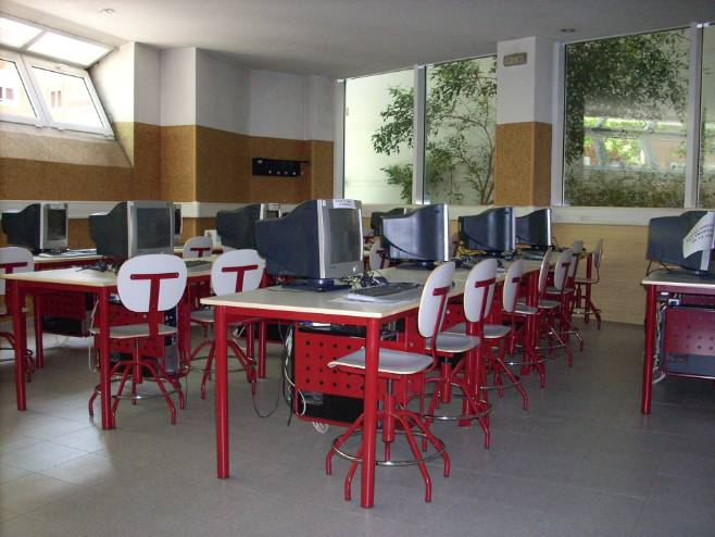 Aula de informática con 16 equipos completos, impresoras y escáner, todos ellos con acceso a Internet ADSL.
