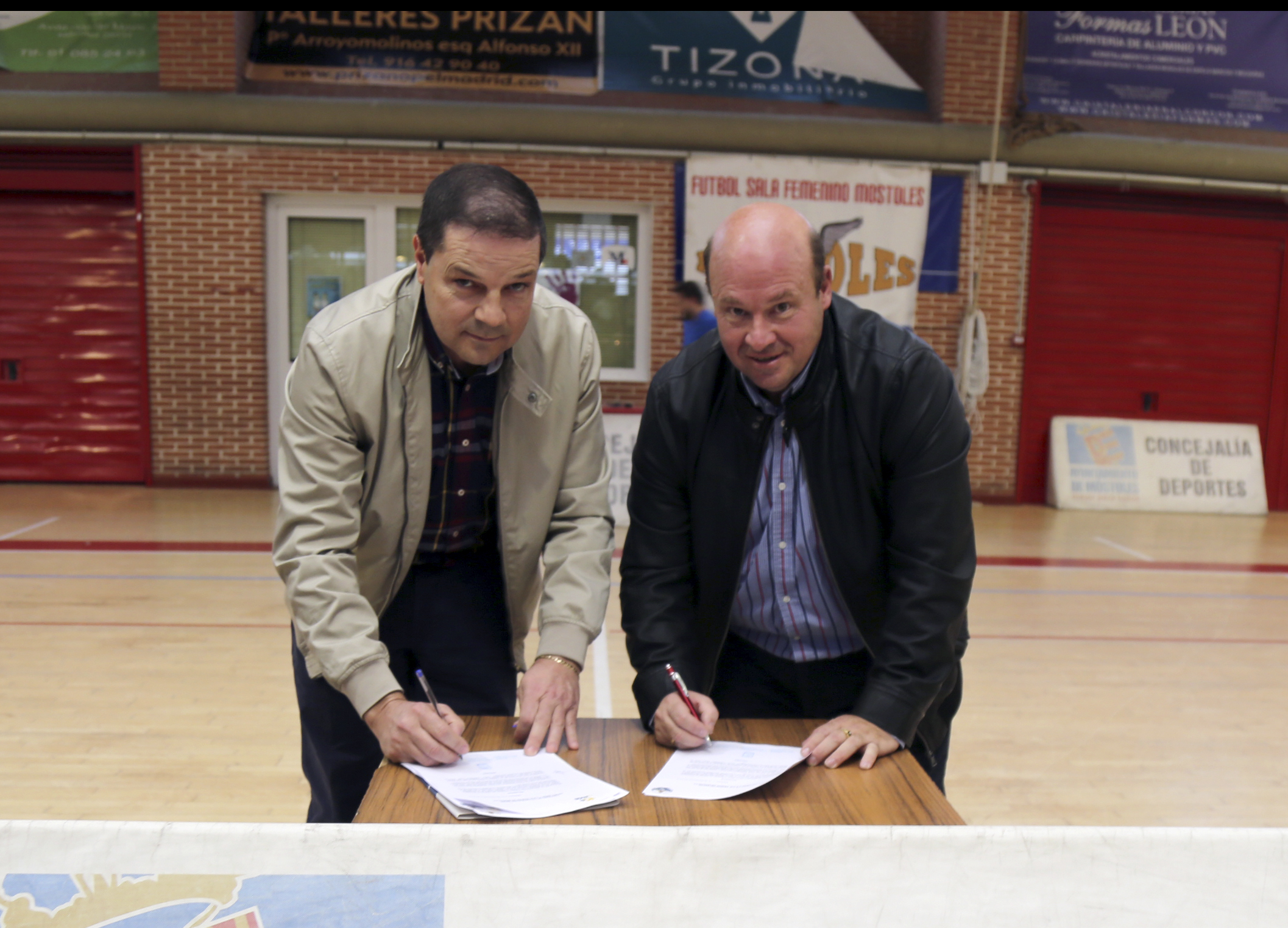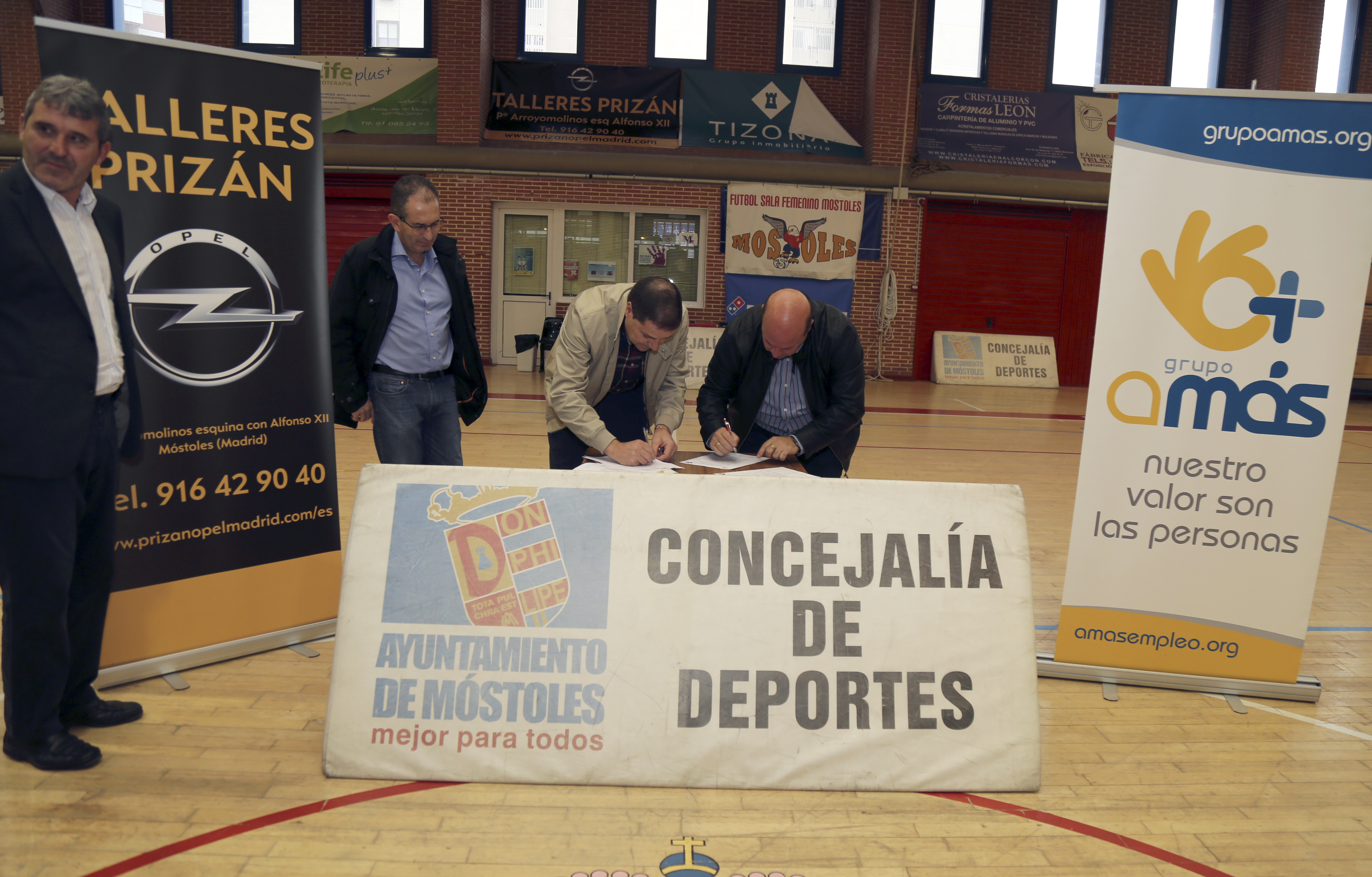 Imagen en alta resolución. Este enlace se abrirá mediante lightbox, puede haber un cambio de contextoEl Club deportivo Ciudad de Mostoles fútbol sala y el Grupo AMÁS firmaron el sábado 12 de noviembre, en el Pabellón de Villafontana, un convenio de colaboración, que tiene por objetivo potenciar la inclusión de personas con discapacidad intelectual en el deporte. Al acto, celebrado durante el descanso del partido derbi celebrado entre los Equipos Ciudad de Mostoles F.S. e Inter Movistar, de la categoría juvenil división de honor, asistió el concejal de Deportes, Agustín Martín.