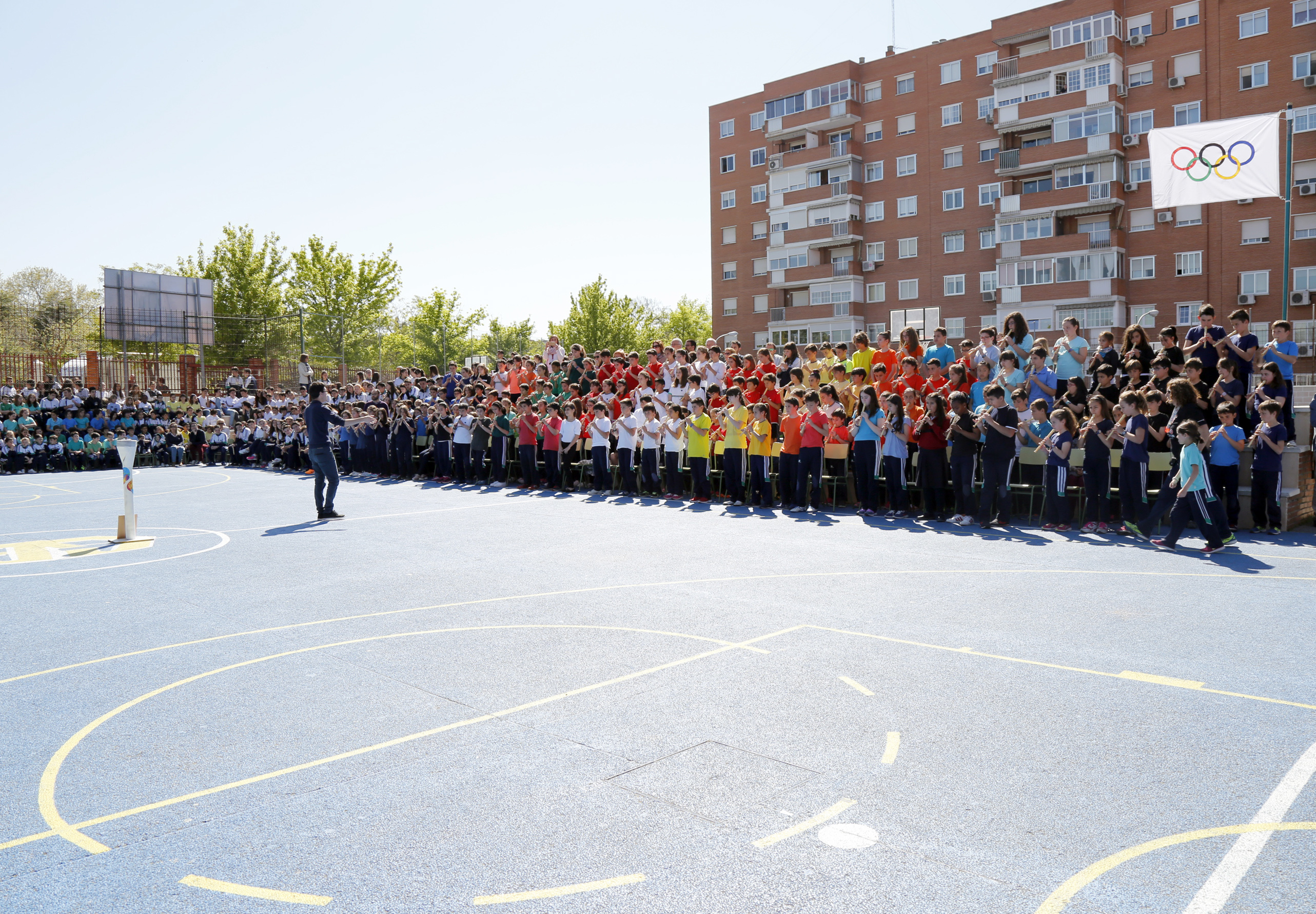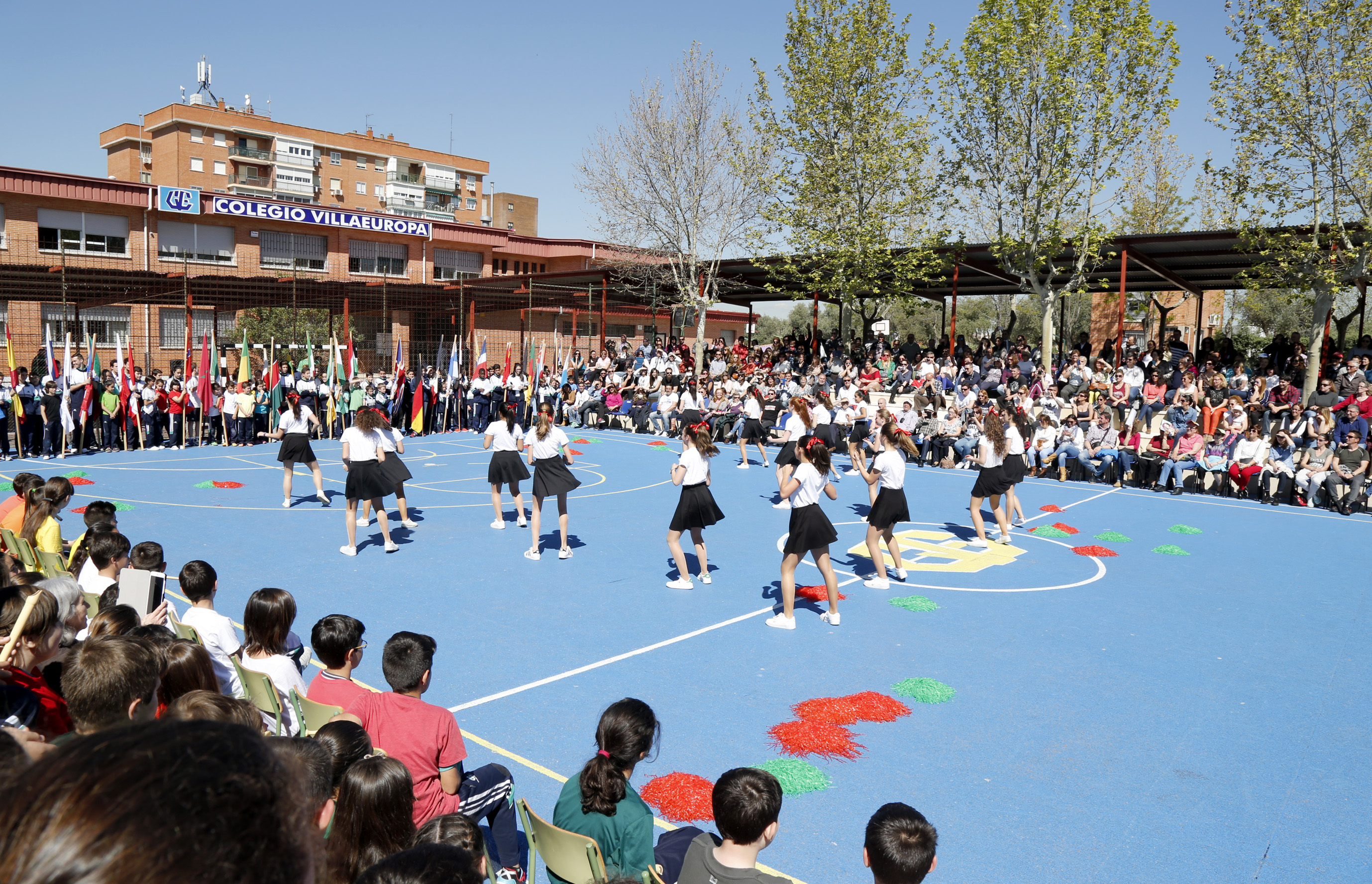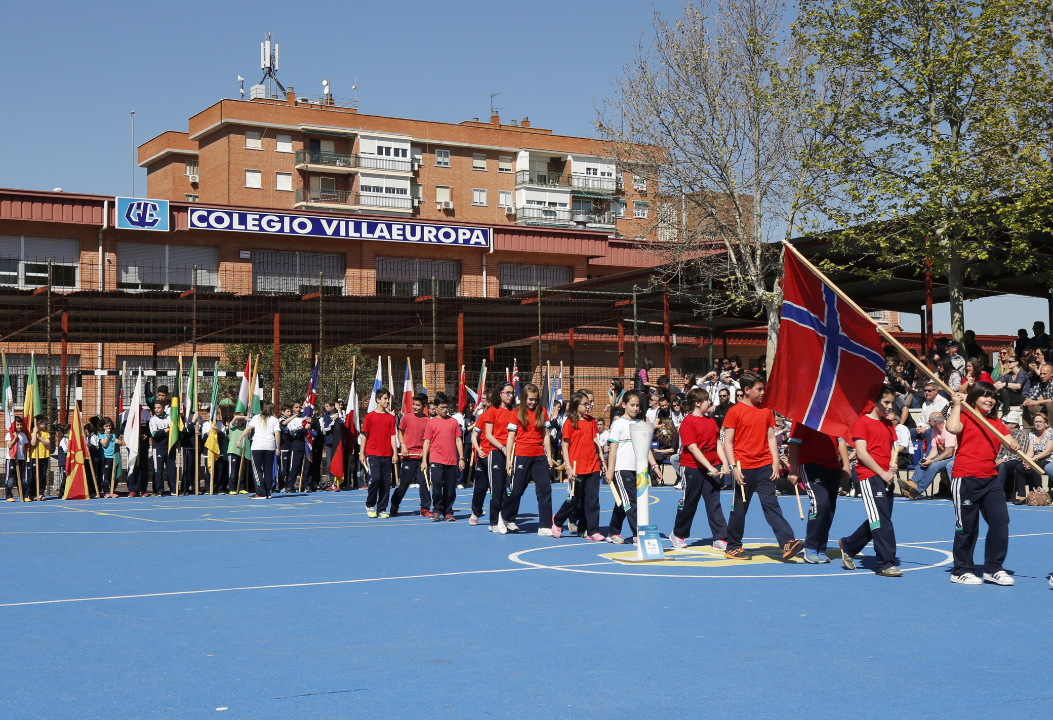 Imagen en alta resolución. Este enlace se abrirá mediante lightbox, puede haber un cambio de contextoLa primera teniente de Alcalde, Jéssica Antolín, y el concejal de Cultura y Deportes, Agustín Martín, asistieron esta mañana a la ceremonia de apertura de los V Juegos Olímpicos del Colegio Villaeuropa de Móstoles. Durante el acto, que contó con la asistencia de alumnos, profesores y padres, se llevó a cabo el desfile de países participantes, la entrada de la bandera Olímpica y el encendido del pebetero. Además se realizó una exhibición deportiva de patinaje, natación sincronizada, cheersleaders del centro y un baile a cargo de la campeona madrileña de gimnasia, Naia Domínguez, así como una batucada con ritmos brasileños.