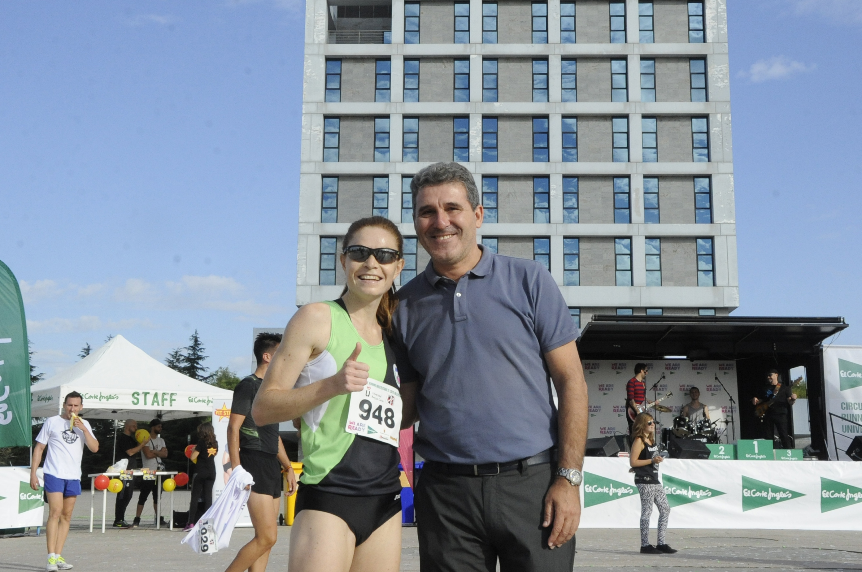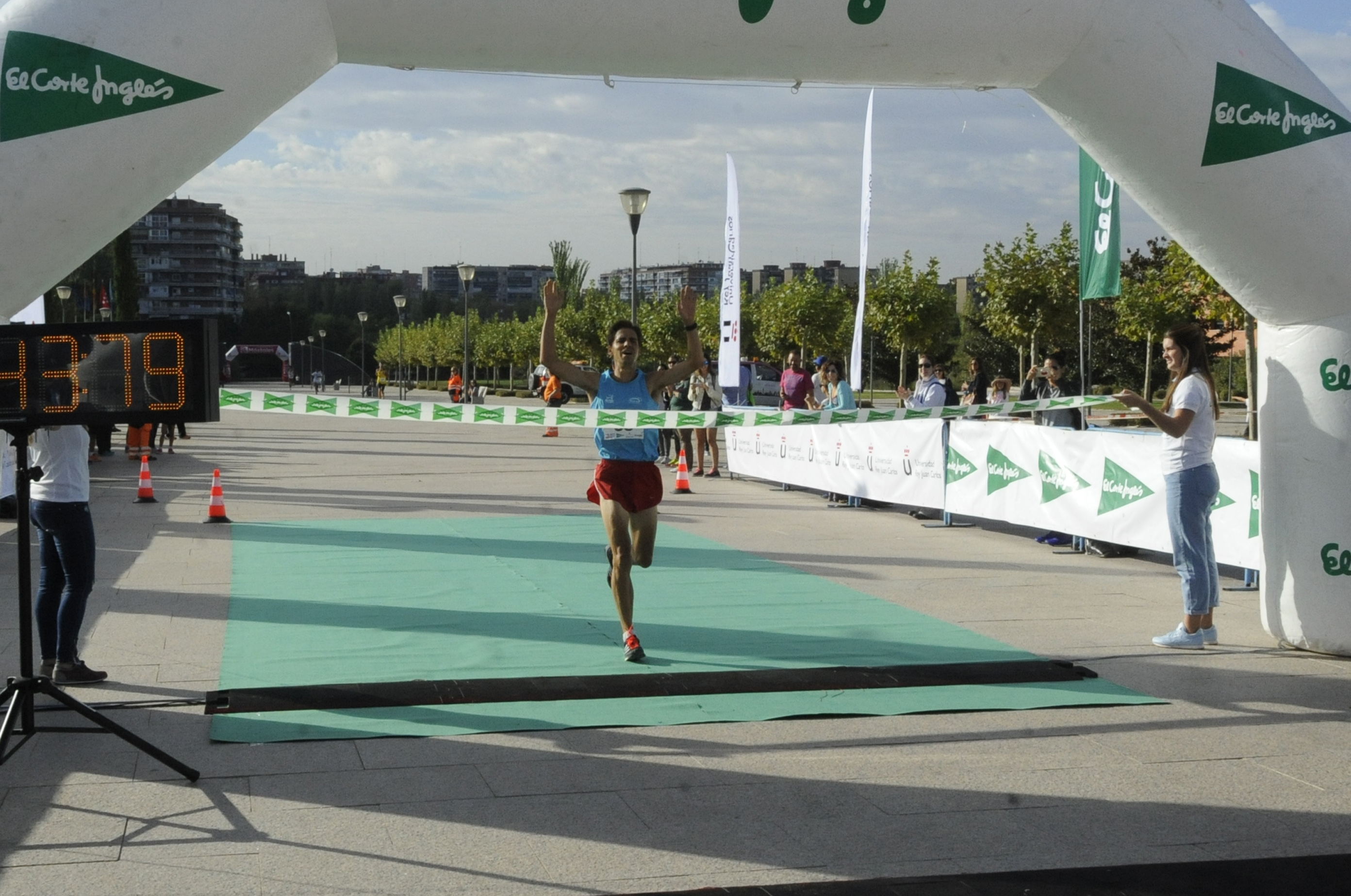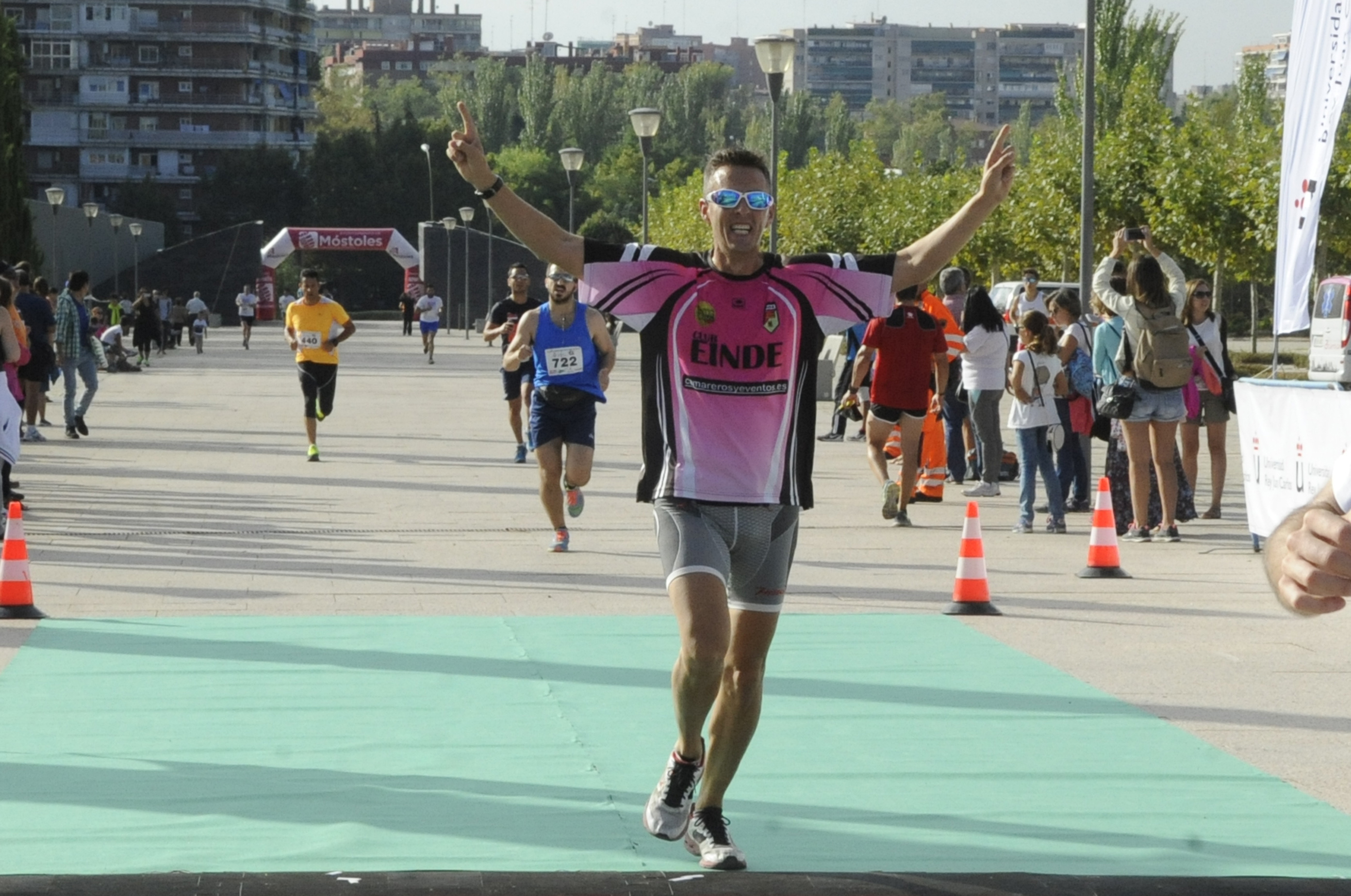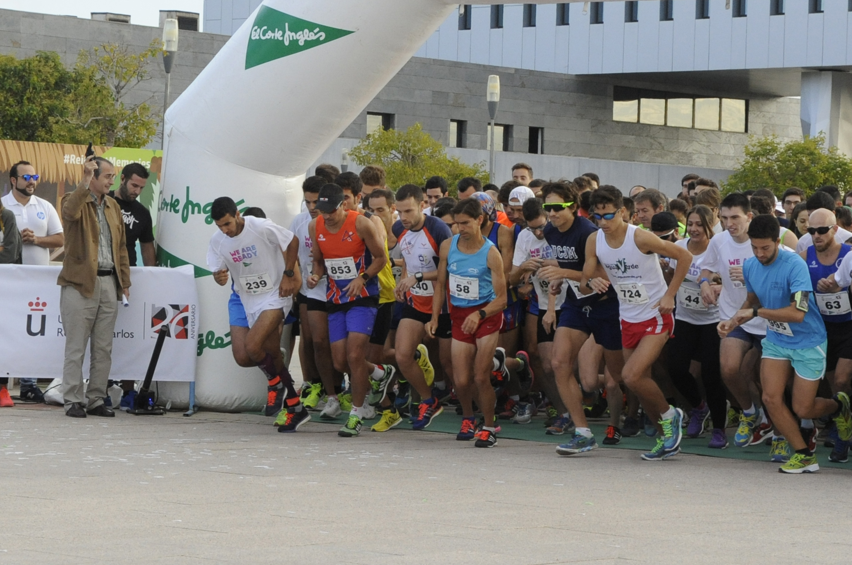 Miles de corredores universitarios participaron ayer en la cuarta prueba de la segunda edición del Circuito de Running Universitario El Corte Inglés, celebrado entre los campus de Móstoles y Alcorcón, con motivo del XX aniversario de la Universidad Rey Juan Carlos. La carrera tuvo un recorrido de 10 kilómetros y reunió a estudiantes y personal docente e investigador que además de disputar la competición, disfrutaron de la fiesta posterior. En representación del Ayuntamiento de Móstoles estuvo presente el concejal de Deportes, Agustín Martín, quien hizo entrega de trofeos junto al rector de la Universidad, Fernando Suárez Bilbao, y otras personalidades.