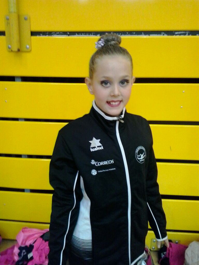 Azul, en categoría benjamín manos libres se colgaba la medalla de oro en su primera competición en el CGR Móstoles. Azul fue primera de entre las 47 gimnastas participantes.