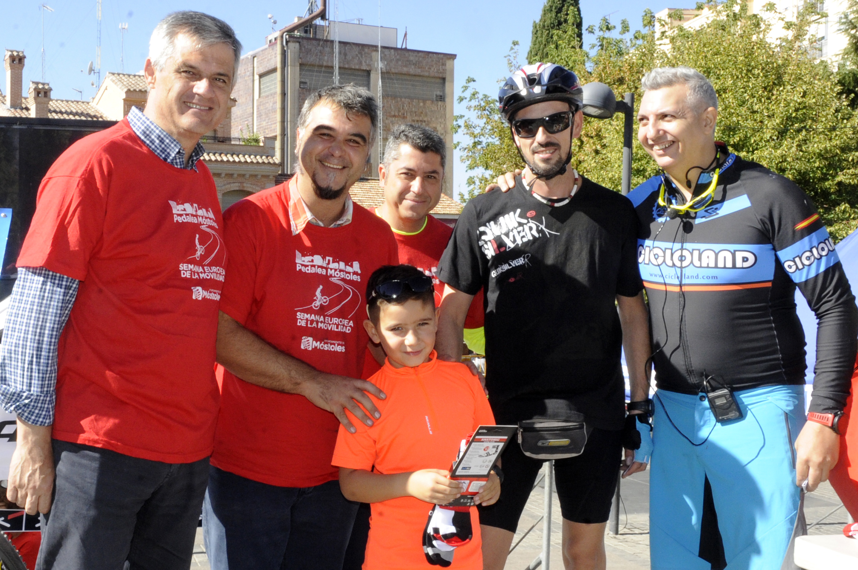`Pedalea Móstoles´ ha contado con más de 150 participantes, entre familias, niños y niñas a partir de siete años y jóvenes, quienes se han sumado a esta iniciativa de utilizar un medio de transporte alternativo al vehículo privado. El pistoletazo de salida a esta ruta, que consistía en pedalear en un circuito cerrado por las calles más céntricas de Móstoles en una ruta de 3, 6 ó 9 kilómetros, lo han dado el concejal de Presidencia, Seguridad Ciudadana y Movilidad, Roberto Sánchez, y el concejal de Cultura y Bienestar Social, Gabriel Ortega, quienes, además, se han sumado a la iniciativa realizando el recorrido en bicicleta.