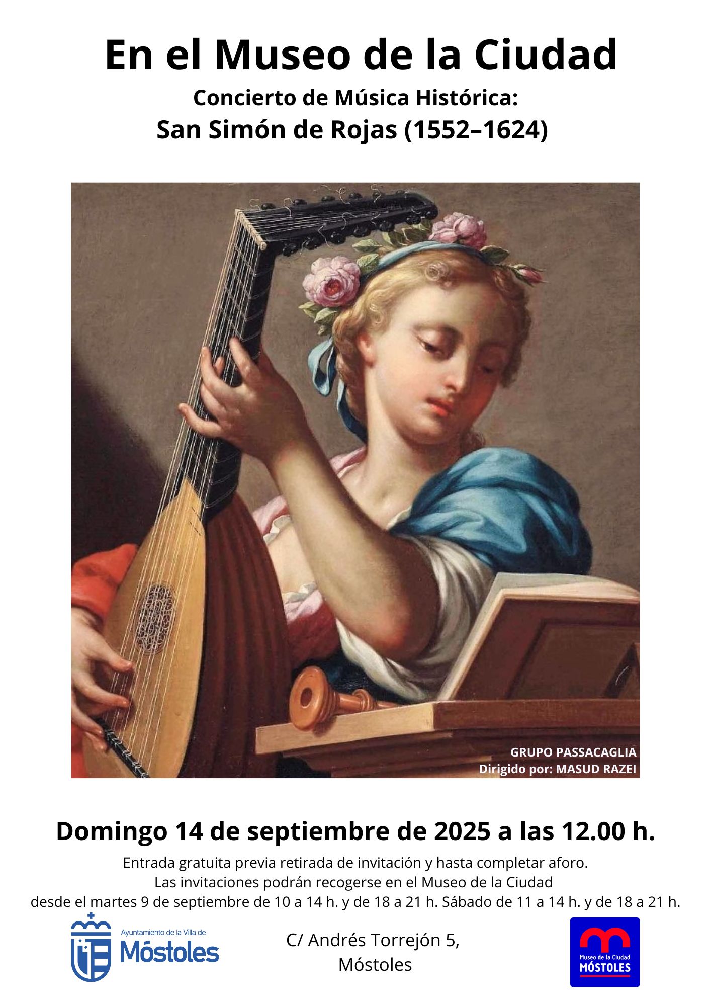 El domingo 14, a las 12:00 h, tendrá lugar el concierto "La música en tiempos de San Simón de Rojas (1552-1624)" y la música en su época, a cargo del grupo Passacaglia, especializado en la interpretación del repertorio del Renacimiento y el Barroco. Bajo la dirección de Masud Razei se podrá vivir el ambiente de una época de fe, arte y devoción como fue el tránsito del siglo XVI al XVII, que marcó un periodo crucial en la historia de la música. La riqueza cultural y espiritual de aquella época guarda sorprendentes similitudes con nuestro tiempo, y en muchos sentidos, constituye el origen de nuestra actual percepción musical. Passacaglia recreará esta música explorando al máximo las posibilidades expresivas de su lenguaje y transmitiendo al público toda la fuerza y emotividad de esta tradición sonora.