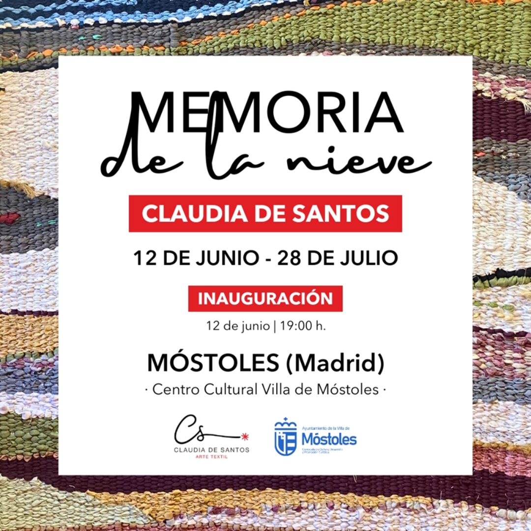 Esta exposición va a convivir con otra de arte textil, en la Sala 2 del Centro Cultural Villa de Móstoles, "Memoria de la nieve", que se podrá ver del 12 de junio al 28 de julio, con entrada libre, y cuya inauguración tendrá lugar el miércoles 12, a las 19:00 h. La muestra, de la artista Claudia de Santos está formada por tapices, e inspirada en la obra del mismo nombre de Julio Llamazares, tejidos con la verdad aprendida de sus poemas, sabiendo que nada puede esperarse del bramido del tiempo.