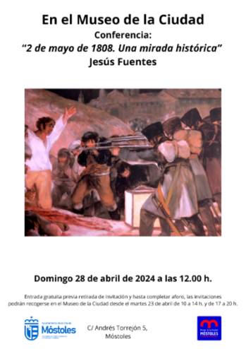 - La conferencia "El 2 de mayo de 1808. Una mirada histórica", de Jesús Fuentes, será el domingo 28 de abril, a las 12:00 h.