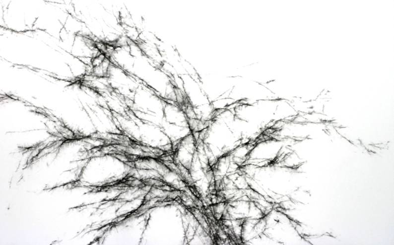 Chevelures es un proyecto de dibujo que recoge la simbiosis entre cuerpo y naturaleza y se centra en la idea del pelo, del cabello. Aparecen relacionados raíces y cabellos, que sutilmente envuelven el cuerpo pero también escapan de él, como manifestaciones inseparables de una forma de sentir un yo que pertenece a la vez al cuerpo y al paisaje.