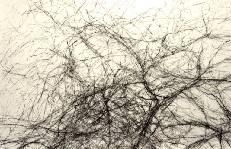 Si pensara en una metáfora visual sobre el proceso de creación sería la de un hilo, un cabello, fino y casi imperceptible, que me permitiera seguir tejiendo y destejiendo la realidad. Esta paradoja recoge todas las complejidades del proceso creativo.