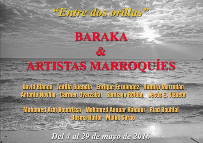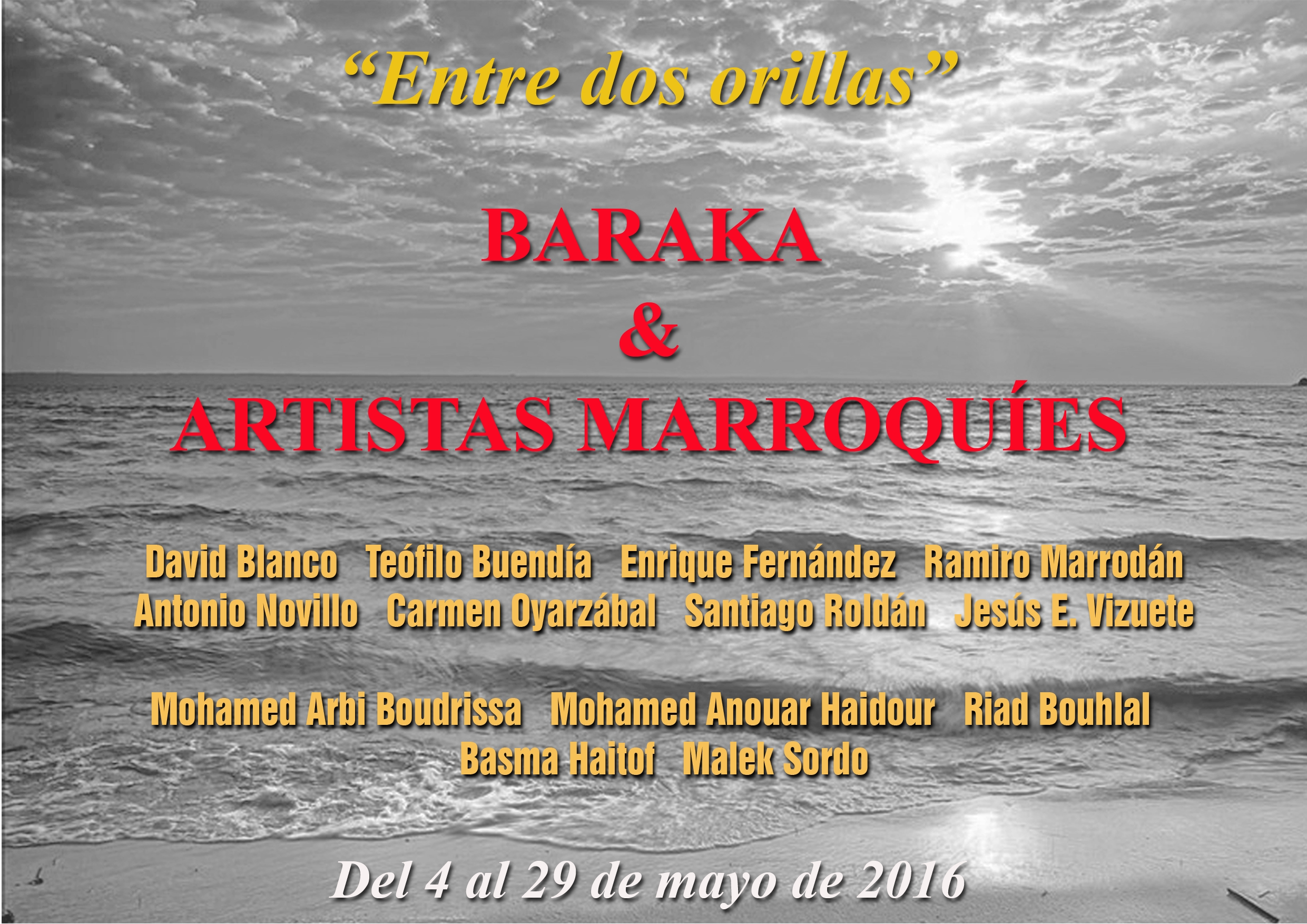 Baraka es un grupo de artistas de diversas tendencias, unidos por una sensibilidad afín que les lleva a trabajar en diversos y diferentes proyectos plásticos colectivos y para la realización de este nuevo proyecto "Entre dos orillas" se ha unido a otros artistas de orígenes y culturas diferente con la intencionalidad de crear un espacio común de interacción artística que tiene como objetivo acercar dos entornos, el hispano y el marroquí, hacia la confluencia en pro de una relación que supere la susceptibilidad y la superficialidad. El arte es un instrumento válido para dicha tarea porque se nutre de la creatividad y la indulgencia. Desde dicho principio queremos contribuir no solo como un puente de unión por medio de esta iniciativa sino además con la proyección de convertirlo en un instrumento estable y duradero de consolidación de los nexos entre los dos países y sus dos pueblos.