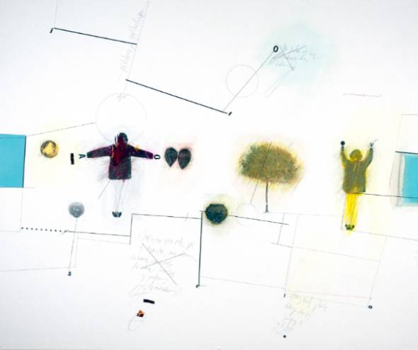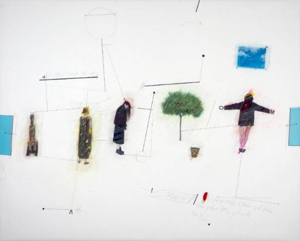 En su pintura, el color y la línea, forman, junto a la palabra escrita, una trama de significados cruzados, y simbólicos, que reflejan un proceso de investigación con el lenguaje.
