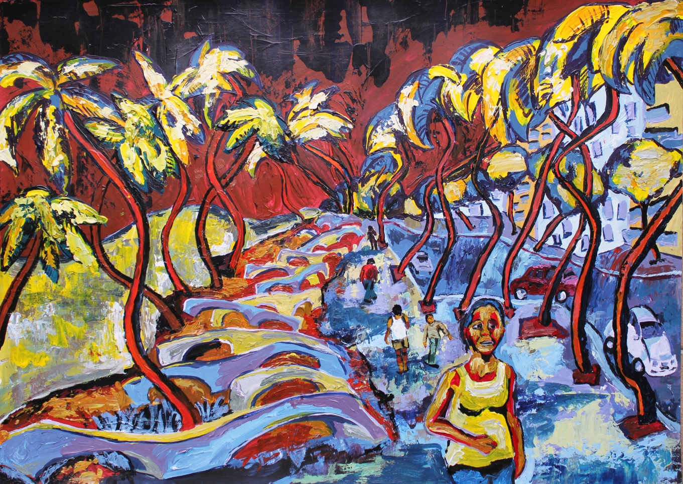 En esta exposición se pueden ver todas las obras que aparecen en el cortometraje El Pintor de Sombras, mas algunas que fueron descartadas, que han sido realizadas por el vallisoletano Javier Bolaños de Hoyos, un artista cuya obra destaca por sus texturas, colores vivos, y por la utilización de una pincelada agresiva, que transfiere a sus obras una gran fuerza y expresividad. Además, en este proyecto ha llevado al extremo su pintura expresionista, saturada, agobiante y con sombras pronunciadas, acercándola a la ilustración, y añadiéndole además formas distorsionadas y líneas sinuosas, produciendo un fuerte contraste con la arquitectura de la zona colonial de Santo Domingo, sus colores pastel y su ambiente de tranquilidad y sosiego.