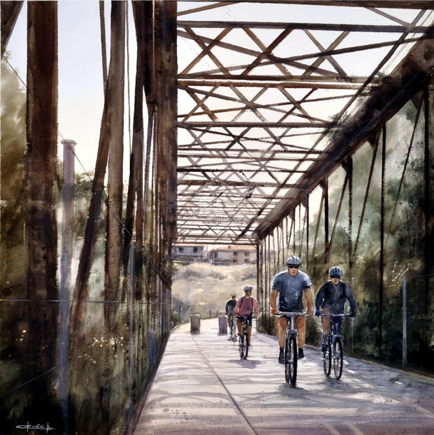 "Puente de hierro" es el título de la magnifica acuarela que obtuvo el segundo premio, y que está firmada por Pablo Rubén López de Griñón, Madrid.