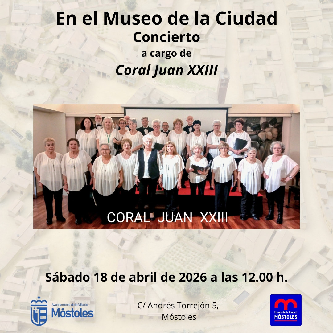 El sábado 18 en el Museo de la Ciudad se podrá disfrutar del "Concierto" ofrecido por la Coral Juan XXIII, a las 12:00 h. La entrada es gratuita previa retirada de invitaciones en el propio centro.