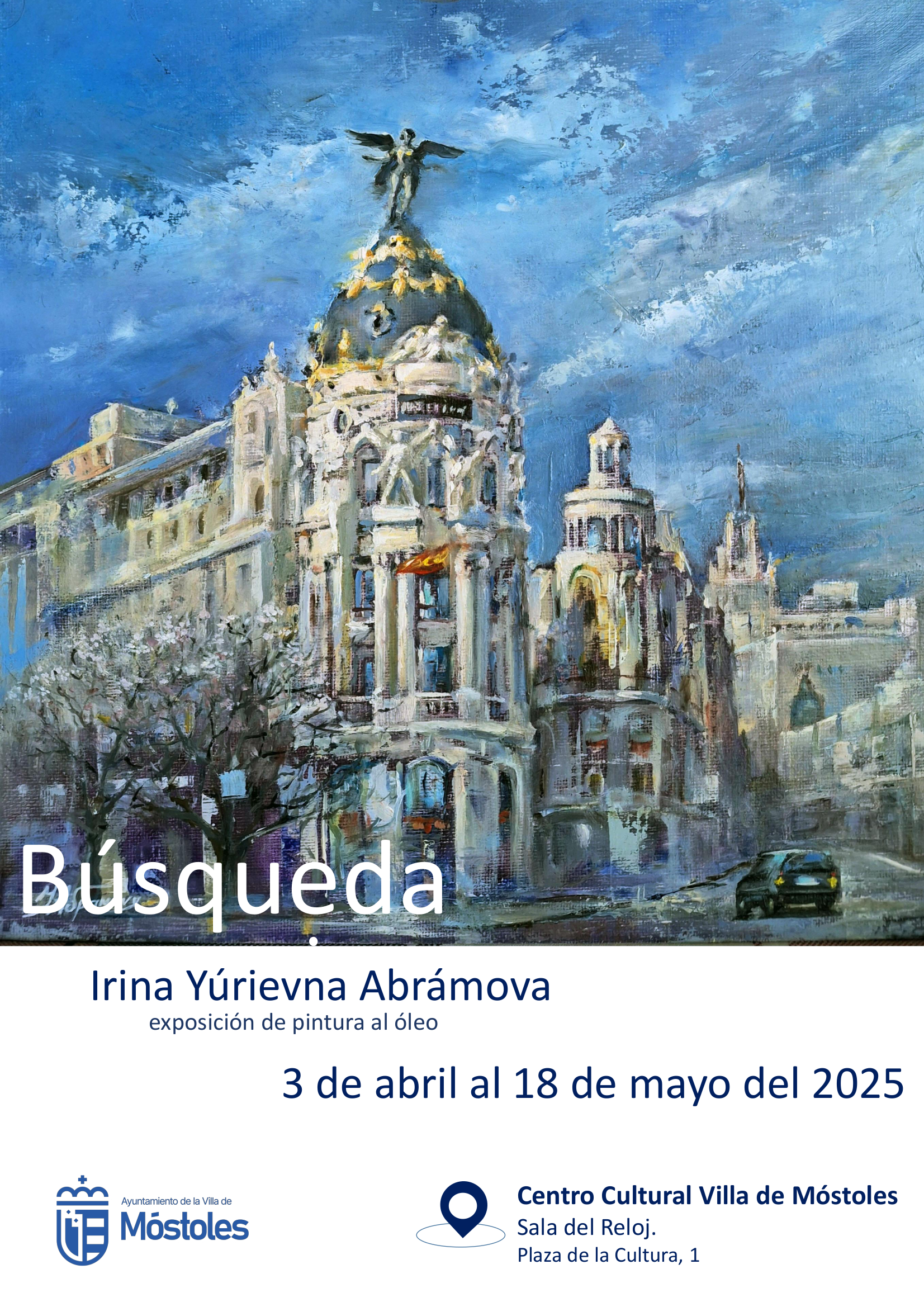 El Ayuntamiento de Móstoles, a través de la Concejalía de Cultura, Desarrollo y Promoción Turística, organiza una exposición de la artista Irina Yúrievna Abrámova, que reúne cerca de 30 obras, principalmente pintadas en óleo sobre lienzo.