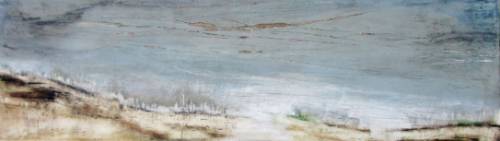 Las obras de mayor formato y técnica mixta (óleo, lápices y pigmentos) sobre madera nos trasladan a paisajes deshabitados donde la Naturaleza es el único protagonista.