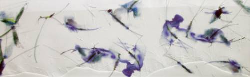 En el caso de la obra gráfica, la ausencia de color en los fondos busca centrar la atención en los insectos, ahora sí los verdaderos protagonistas, sobre espacios tan solo sugeridos. En esta ocasión el color lo aporta las intervenciones directas con acuarela y tinta sobre el gofrado o los insectos impresos en el metacrilato superpuesto en el papel.