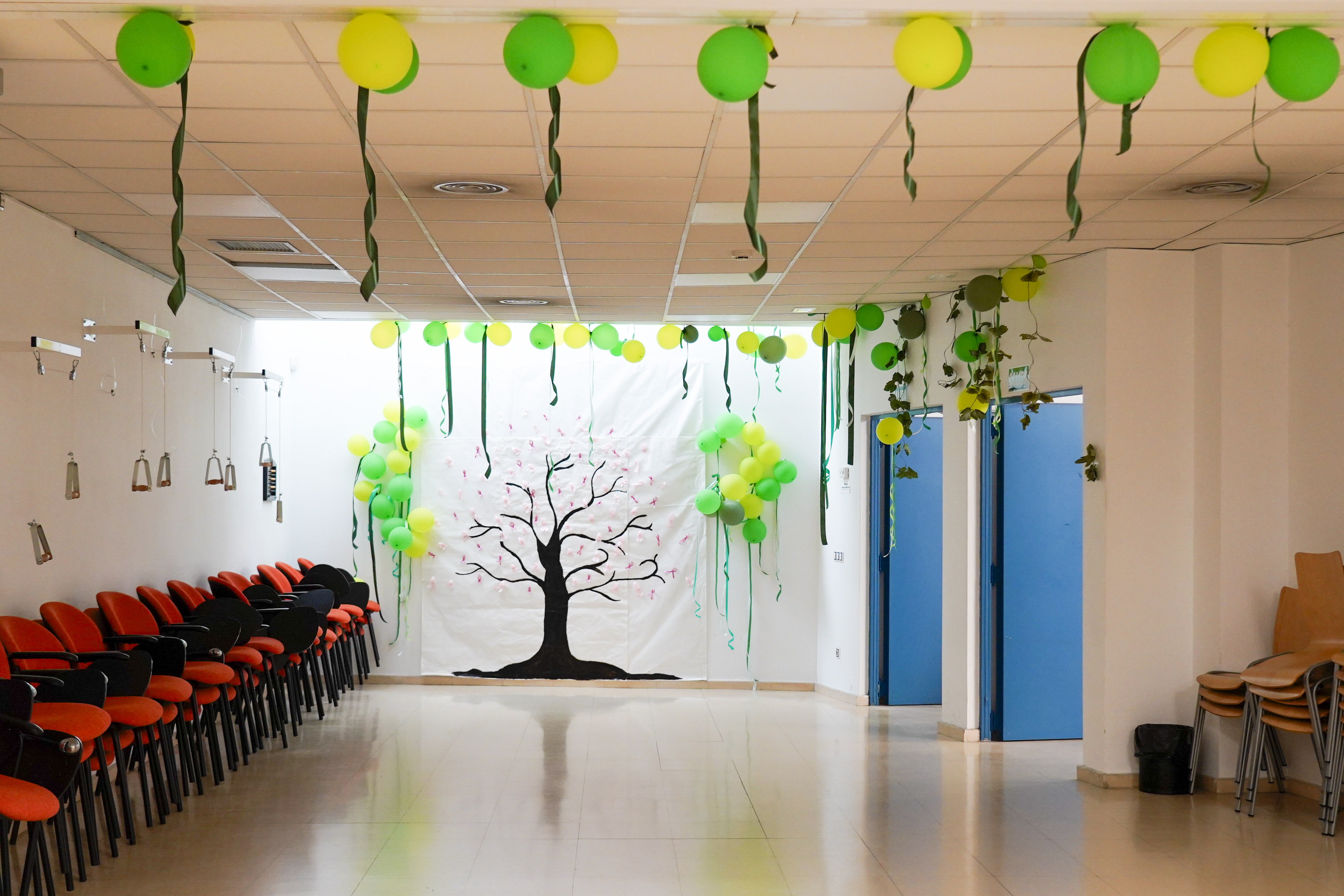 El centro cuenta con biblioteca, dos aulas, dos salas polivalentes, gimnasio, taller de terapia, salón de juegos y sala de informática.