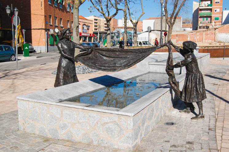 destacada LAVADEROdestacada LAVADEROFue reconstruido en 2011 como fuente ornamental, aunque conserva la estructura del antiguo lavadero de la Charquilla, añadiéndole un grupo escultórico.