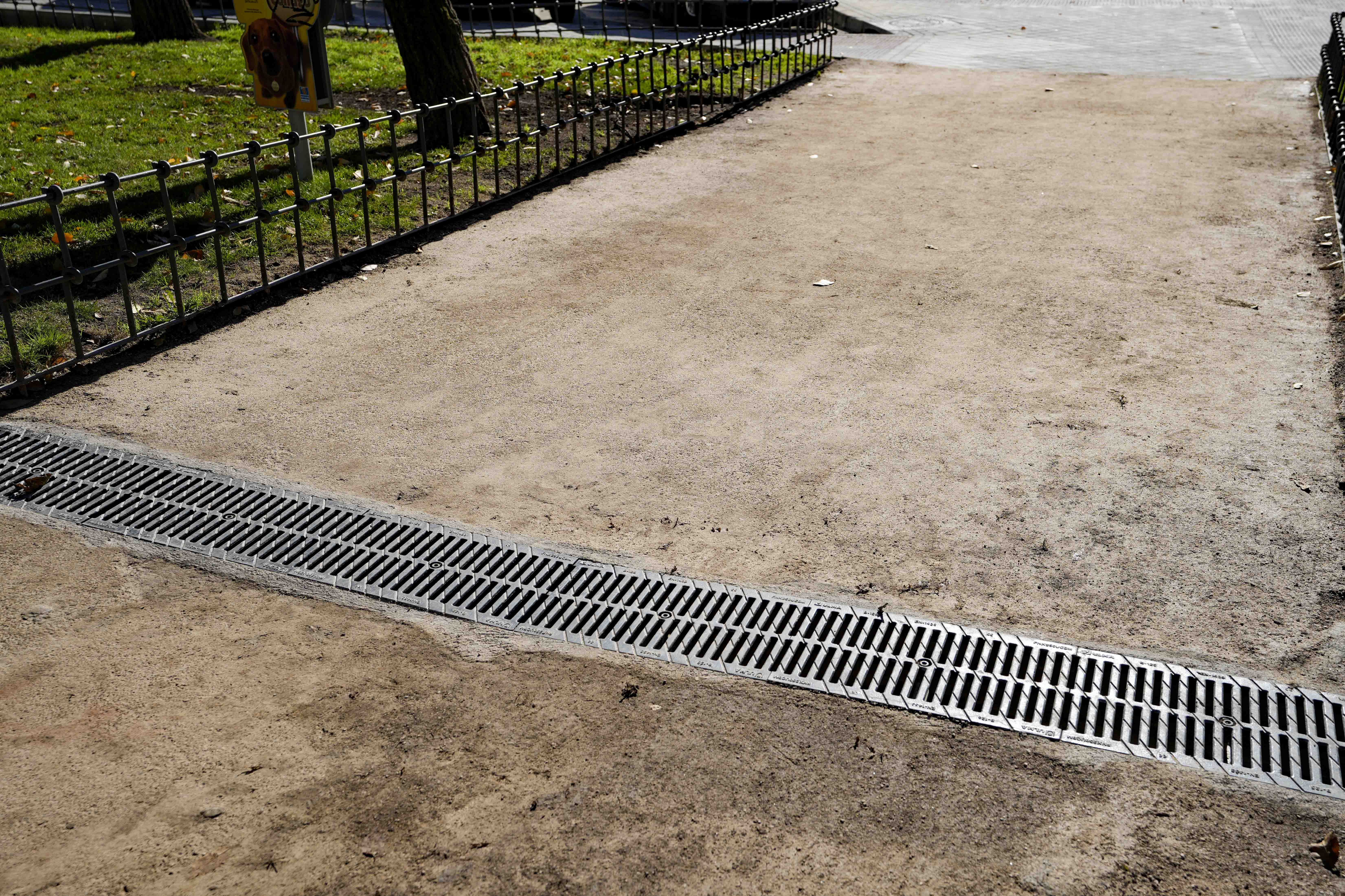 También, se han eliminado barreras arquitectónicas como bordillos y desniveles para facilitar el tránsito peatonal, de carritos y sillas de ruedas, así como para evitar los posibles embalsamientos de agua en caso de lluvia abundante. Además, se han colocado nuevas canaletas con rejilla y desagüe para minimizar la salida de agua del parque a las calles adyacentes.