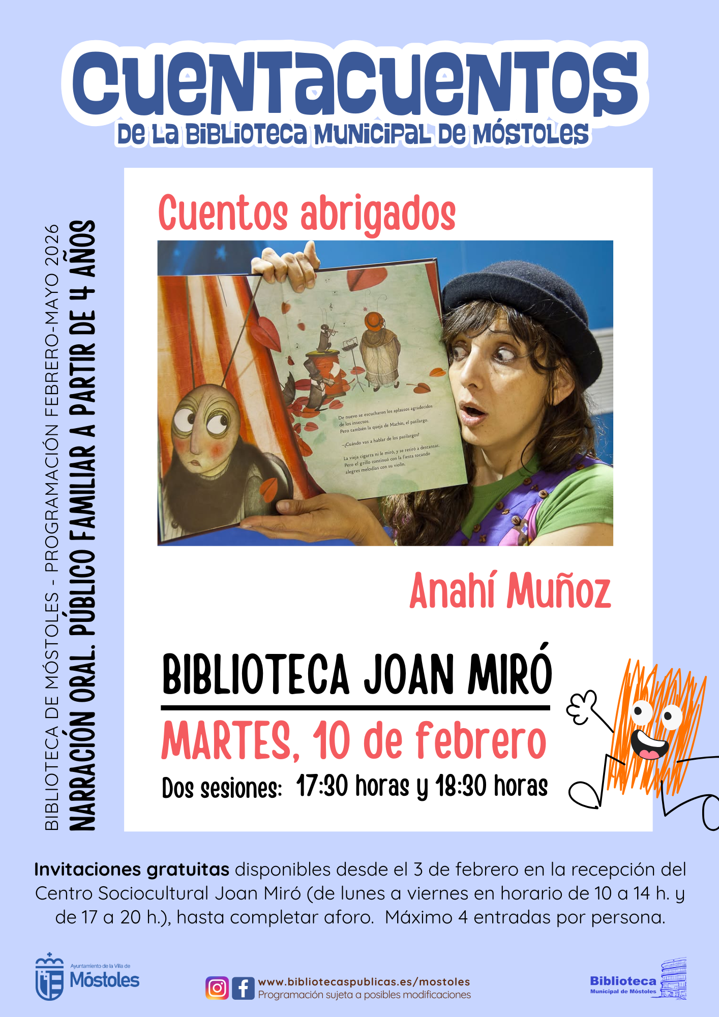 agenda semanaagenda semanaLa agenda cultural de la semana, organizada por la Concejalía de Cultura, Desarrollo y Promoción Turística, arranca este martes 10 con "Cuentos abrigados", cuentacuentos que llevará a cabo Anahí Muñoz en la biblioteca del Centro Sociocultural Joan Miró a las 17:30 h y 18:30 h (2 sesiones de 30 minutos).