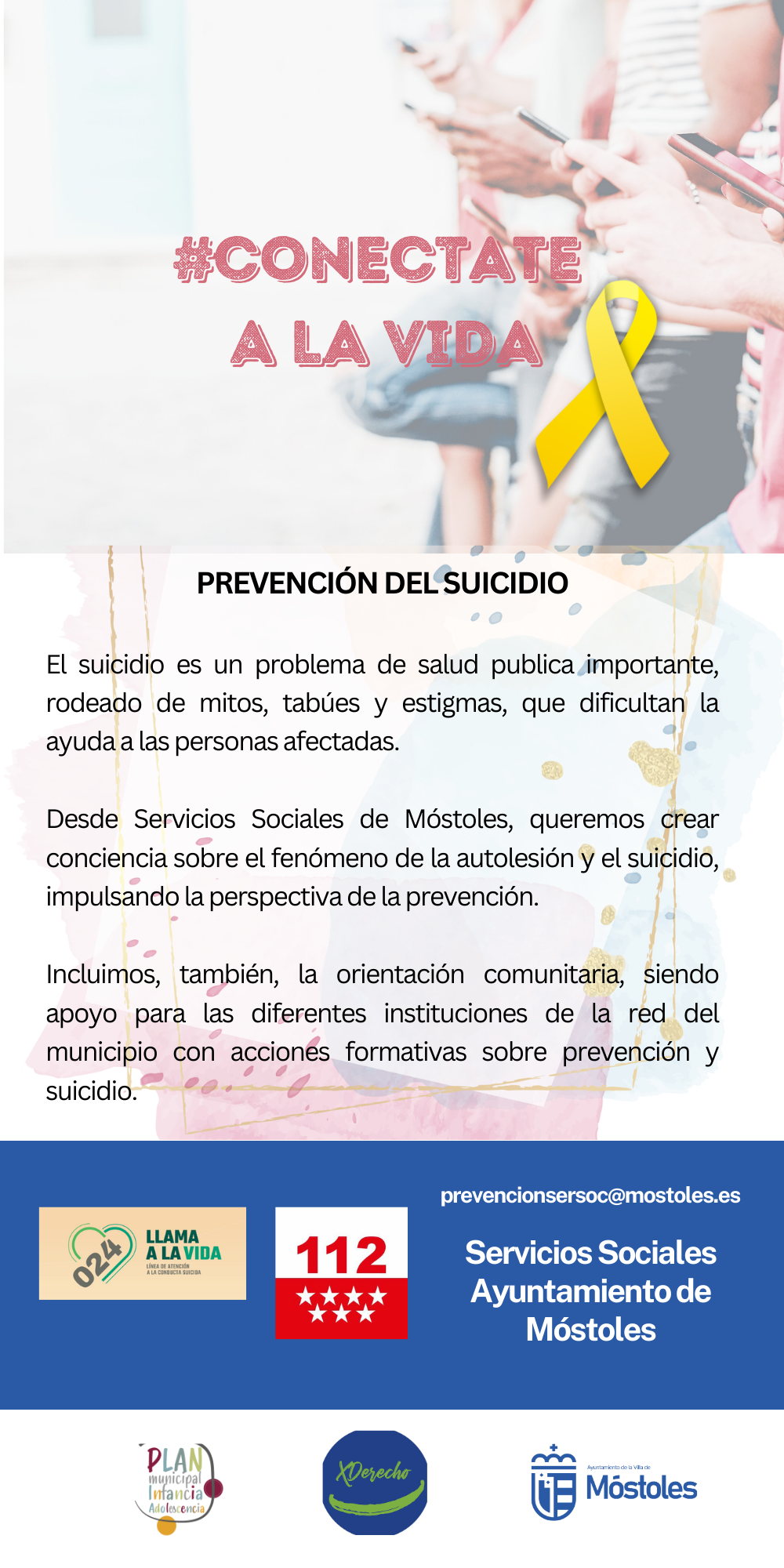 , nace, desde Servicios Sociales, el Proyecto de Prevención del Suicido de Móstoles desde donde realizamos compañas de sensibilización, información y divulgación para la prevención del suicidio.