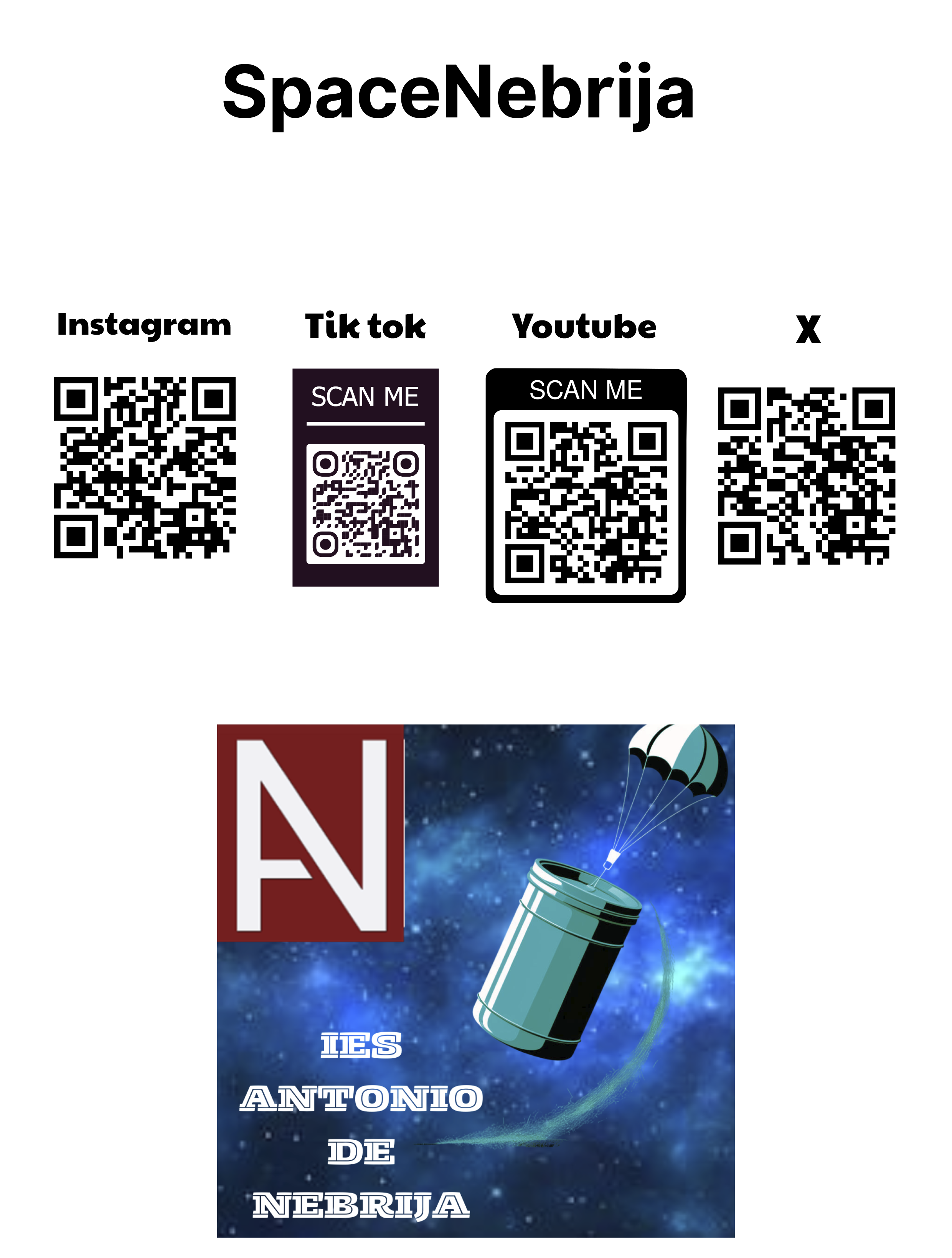 Somos un grupo de alumnos de cuarto de la ESO del Instituto de Educación Secundaria Antonio de Nebrija de Móstoles. Nuestro nombre es Space Nebrija y, actualmente, participamos en un concurso de la Agencia Espacial Europea (ESA), que consiste en diseñar un satélite del tamaño de una lata de refresco (CanSat), el cual será lanzado al espacio mediante dron, avioneta o cohete.