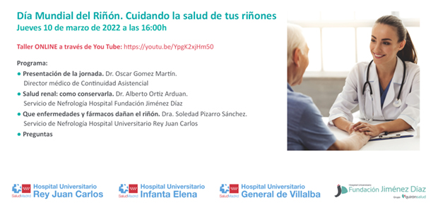 • Día Mundial del Riñón, Cuidando la Salud de tus riñones, Jueves 10 de marzo de 2022 a las 16:00 h.
