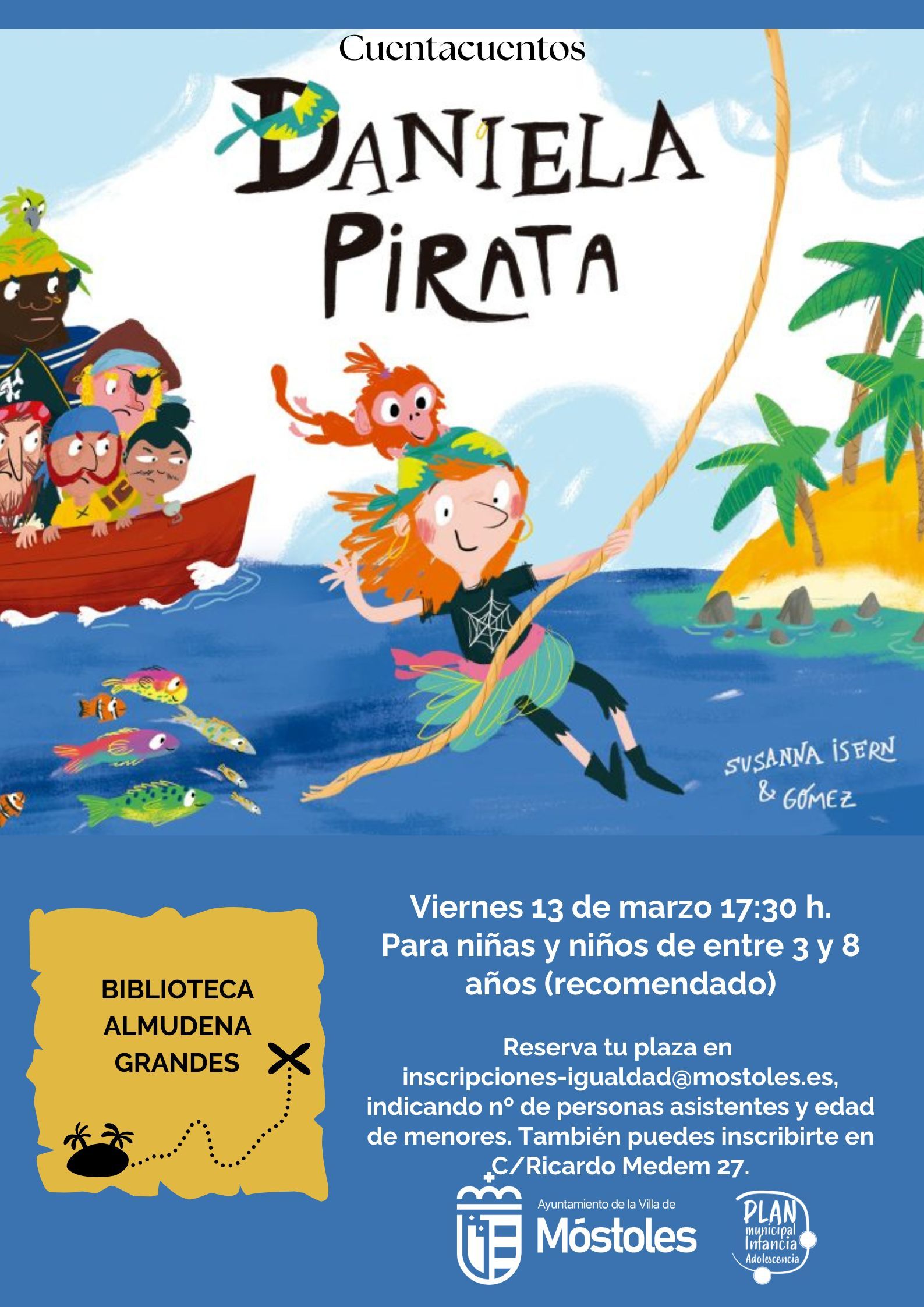 El mismo día 13, por la tarde, los más pequeños podrán disfrutar del cuentacuentos "Daniela Pirata", en la Biblioteca Central Almudena Grandes, a las 17:30 h.