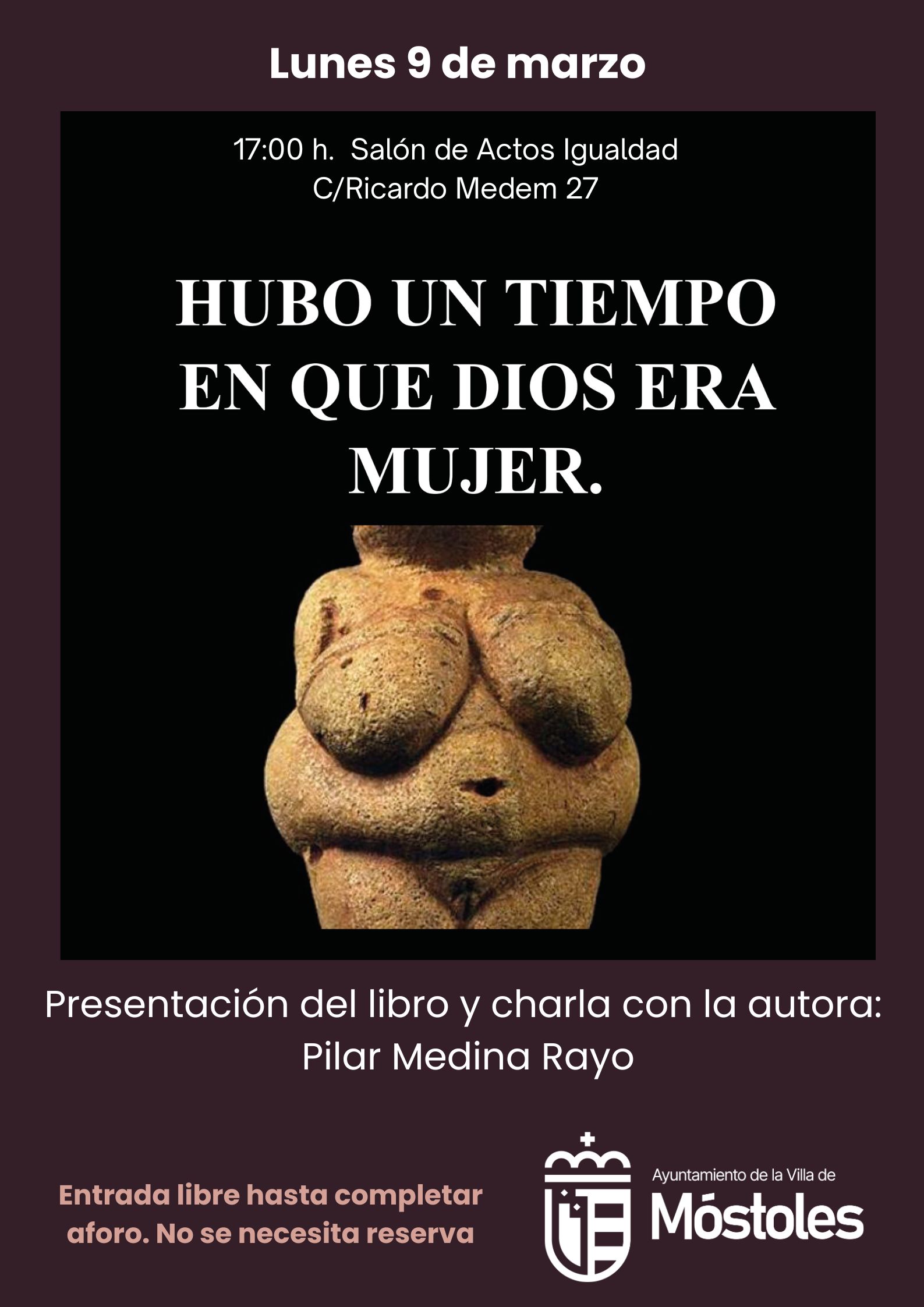 El lunes 9 de marzo, a las 17:00 h, se presentará el libro "Hubo un tiempo en que Dios era mujer", en el que habrá una charla con la autora Pilar Medina Rayo, en el Salón de Actos, calle Ricardo Medem, 27.