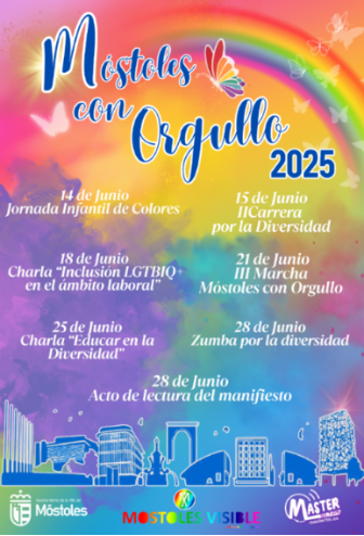 El Ayuntamiento de Móstoles y la Asociación Móstoles Visible han organizado numerosas actividades para la Semana Móstoles con Orgullo, que se desarrollará del 14 al 28 de junio de 2025, con motivo de la celebración del Día Internacional del Orgullo LGTBI+, que se conmemora mundialmente cada 28 de junio.