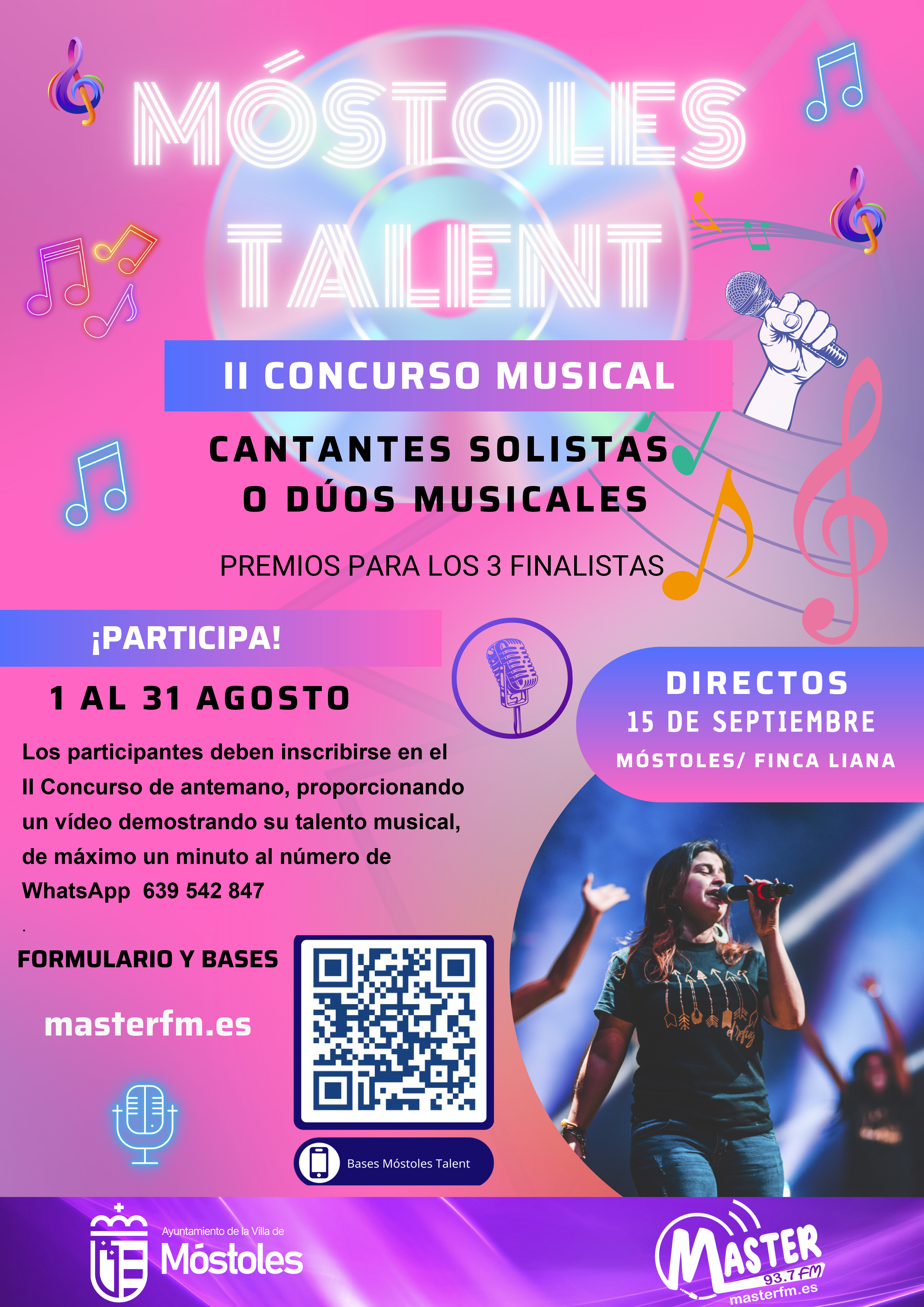Este concurso otorgará premios a los tres finalistas, quienes deberán mostrar sus dotes artísticas en las actuaciones en directo el 15 de septiembre en el Parque Finca Liana, enmarcadas en las Fiestas Patronales de Móstoles.