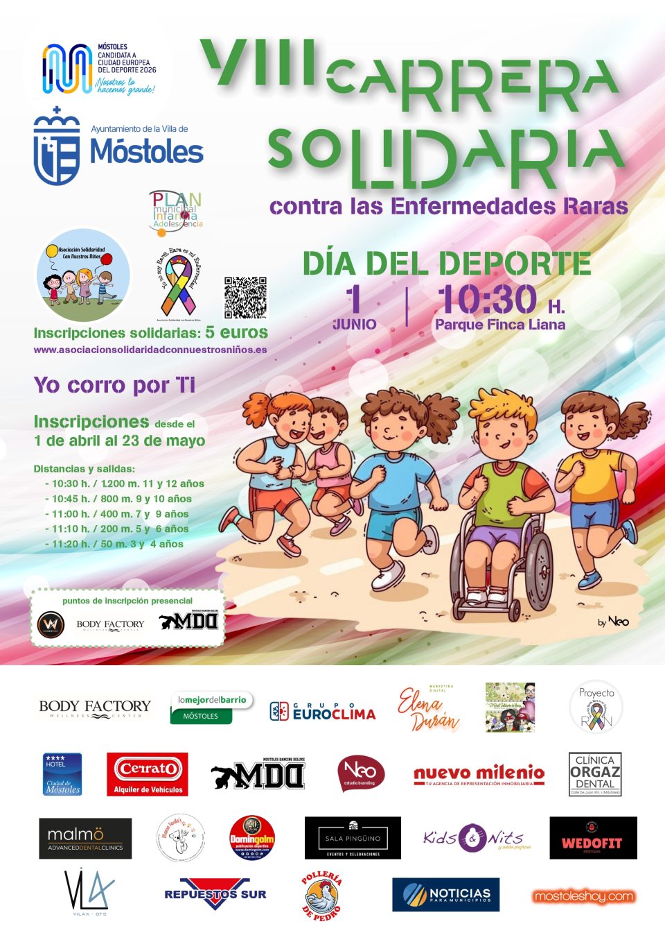 Móstoles acogerá el próximo 1 de junio la VIII Carrera Solidaria Infantil contra las Enfermedades Raras, que reúne cada año a cientos de familias en el Parque Finca Liana para disfrutar de deporte, diversión y solidaridad.