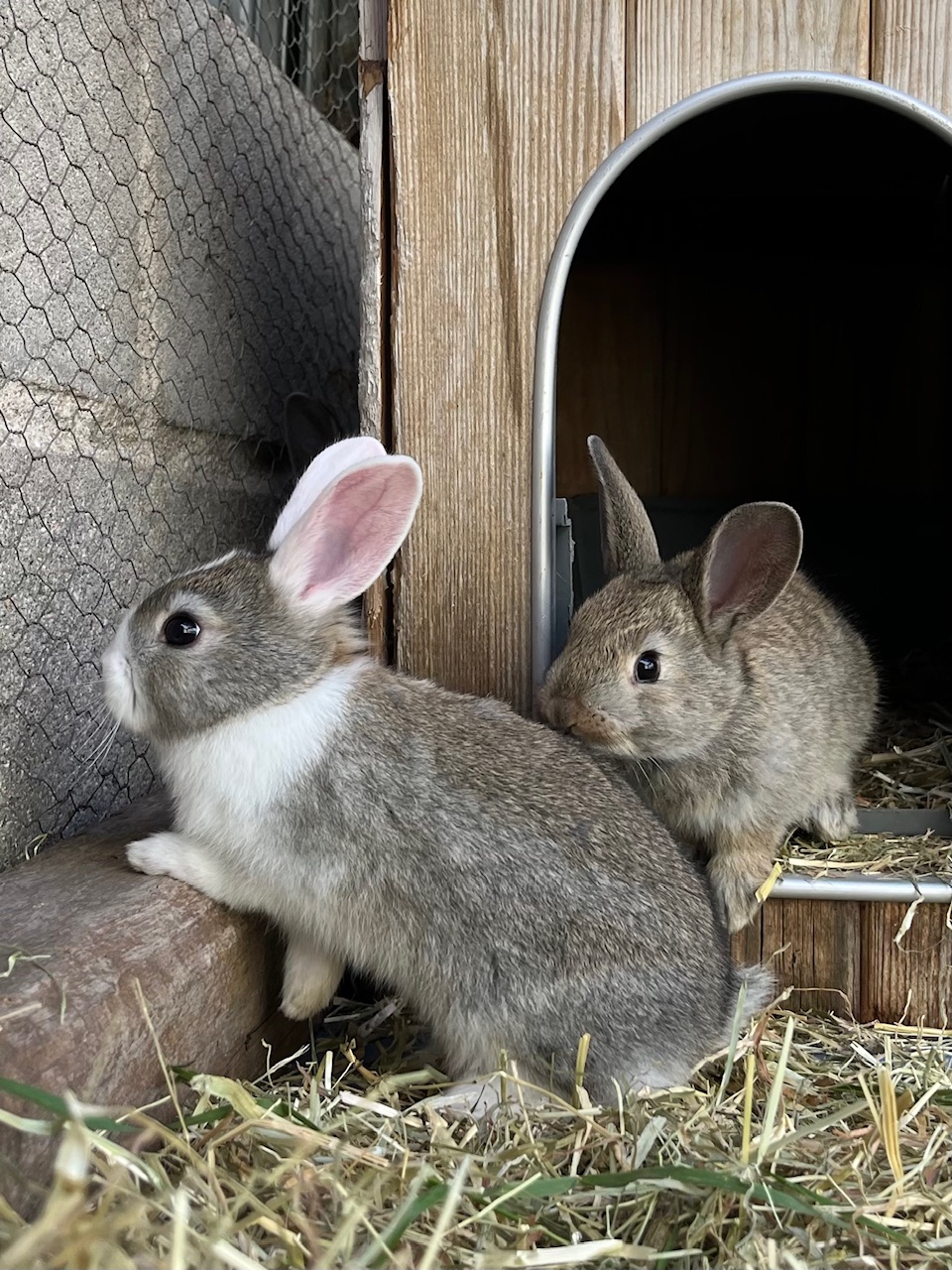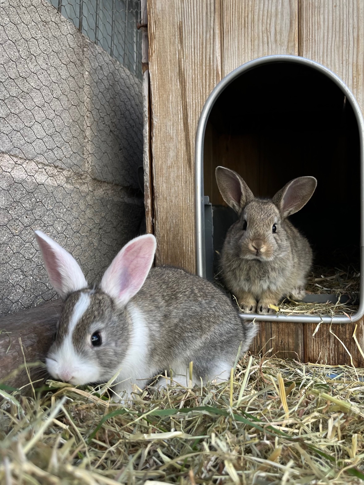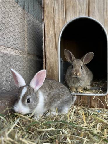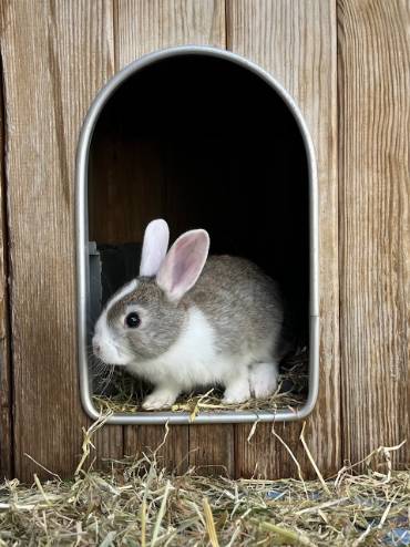 Raza: Conejo cruce Capa: Blanca y marrón Tamaño: Tipo Sexo: Hembra