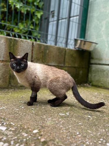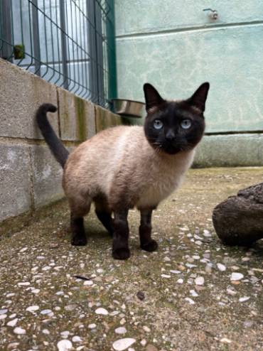 ADOPTADA BLACKY - Gata Jaulón - N Registro 39-25 (1) copia 2Raza: Siamés Capa: Gris oscura Tamaño: Mediano Sexo: Hembra Edad: Nac. 05/01/2023