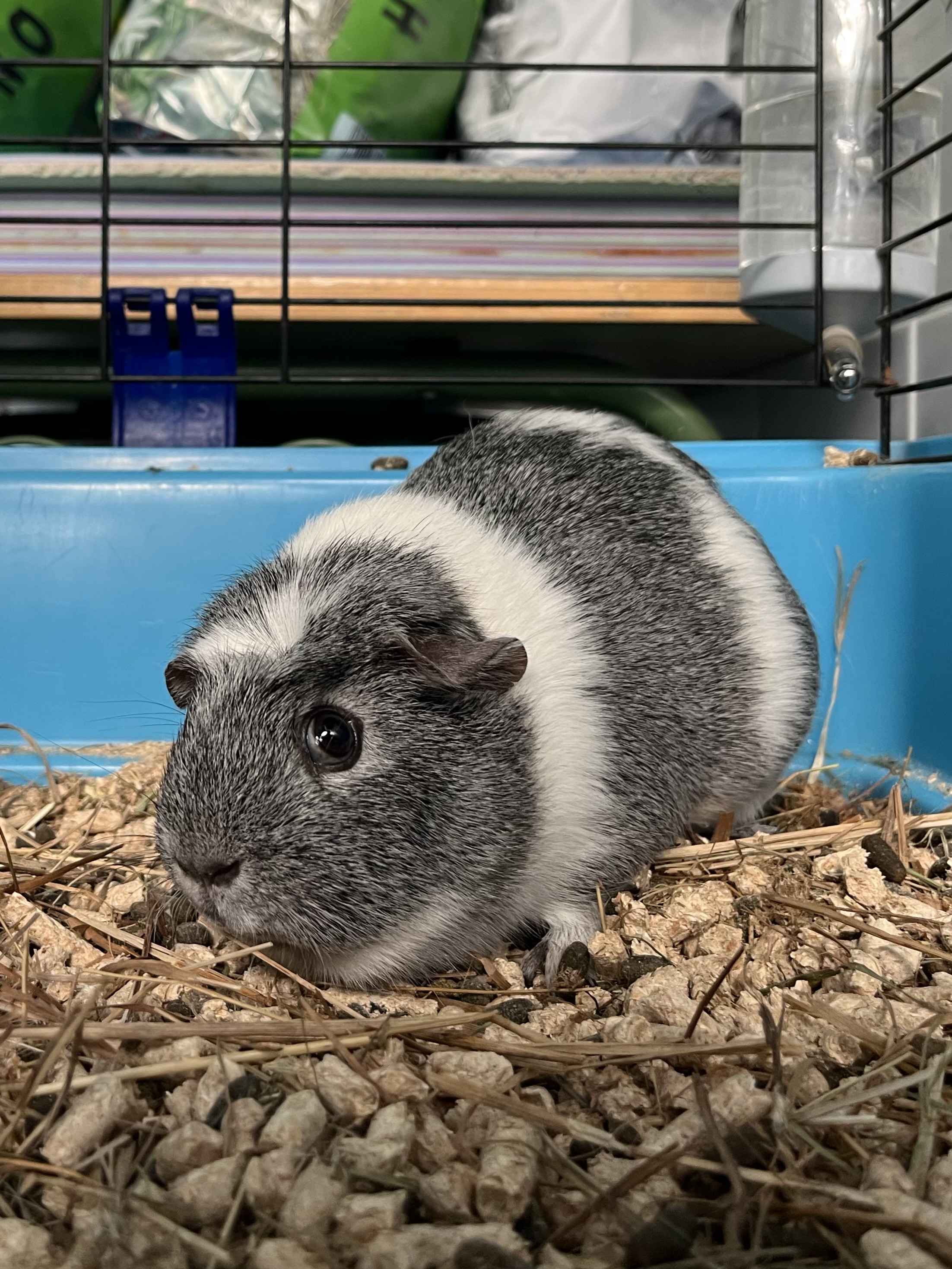 ADOPTADA TINA - Cobaya - N Registro 8-25 (2) copia 2Raza: Cobaya Capa: Gris y blanca Tamaño: Tipo Sexo: Hembra Edad: Nac. 24/01/2024