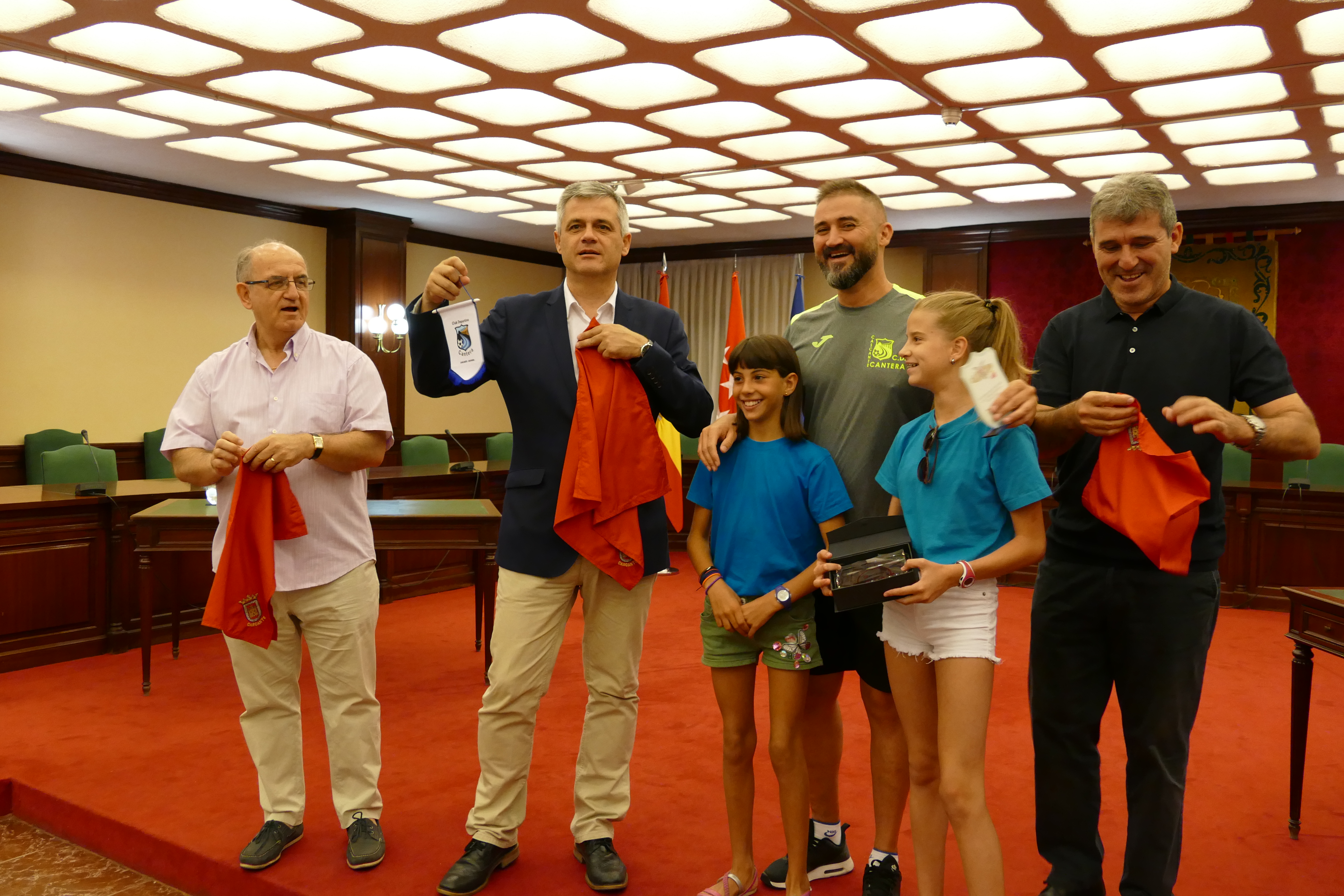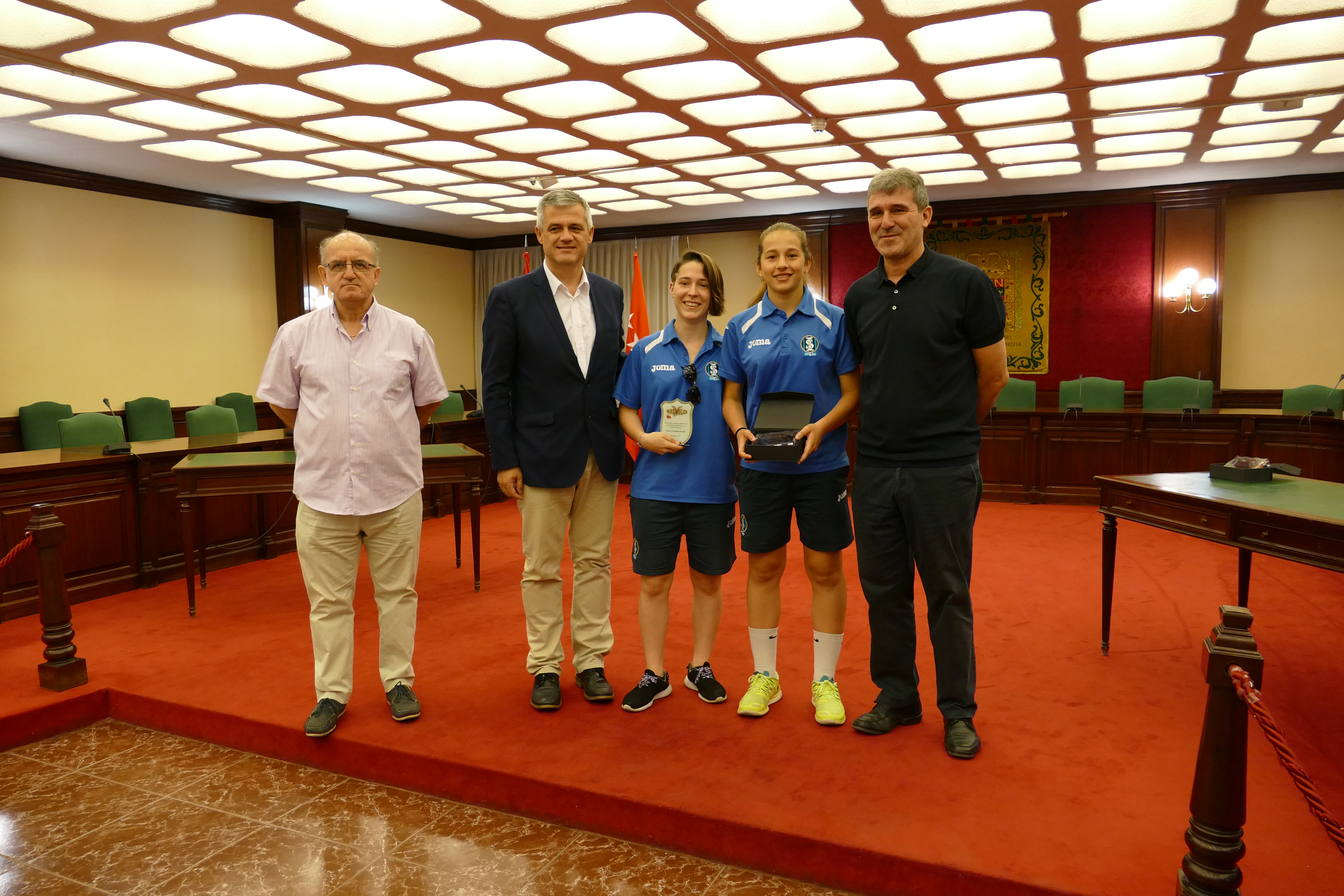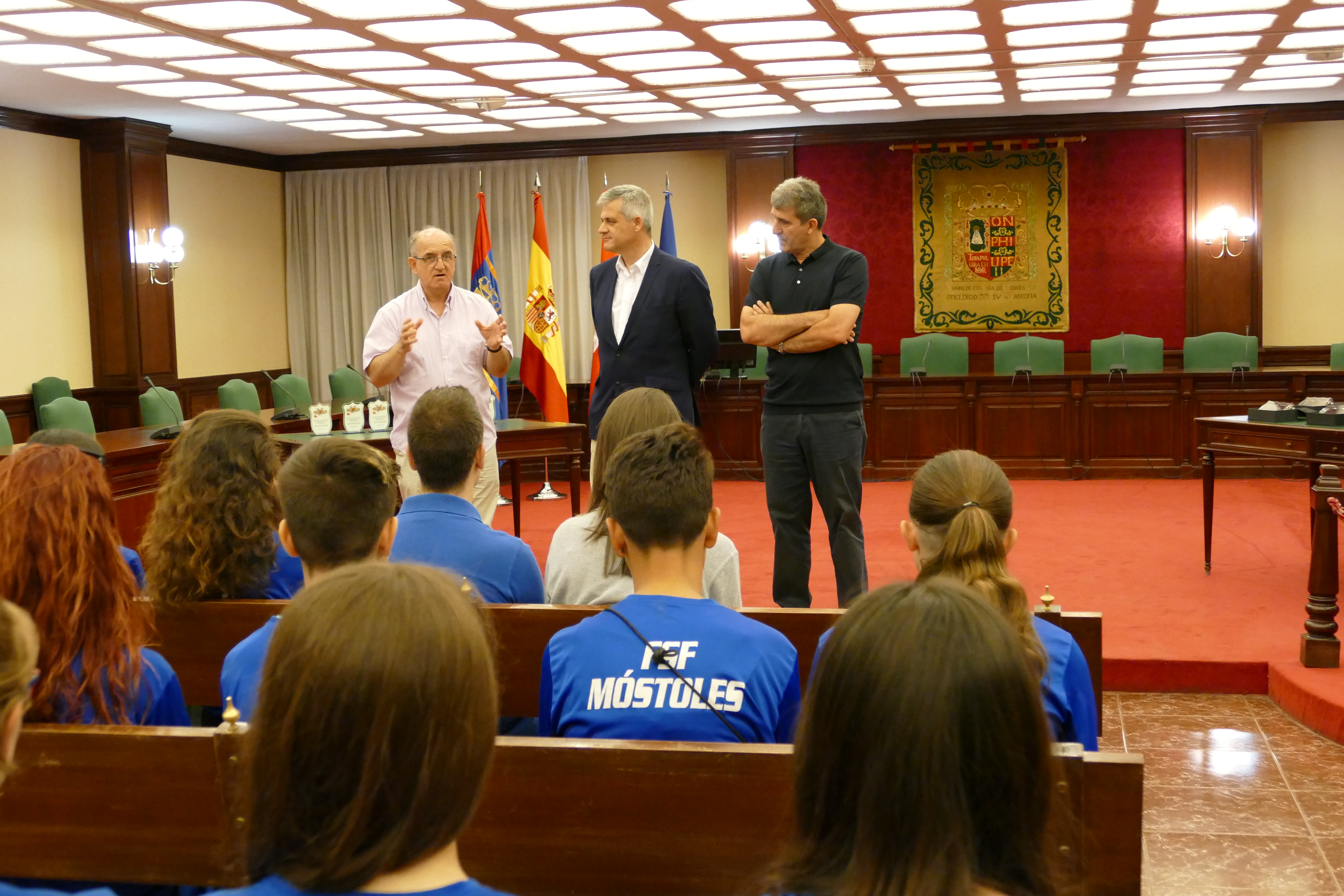 El alcalde de Móstoles, David Lucas, y el concejal de Deportes, Agustín Martín, han recibido esta mañana, en el salón de plenos del Ayuntamiento de Móstoles, a representantes de los ocho equipos de fútbol sala que participan en el Torneo Nacional de esta disciplina, organizado por el club de Fútbol Sala Femenino de la localidad (FSF), la Real Federación de Fútbol y la Federación Madrileña de Fútbol Sala.