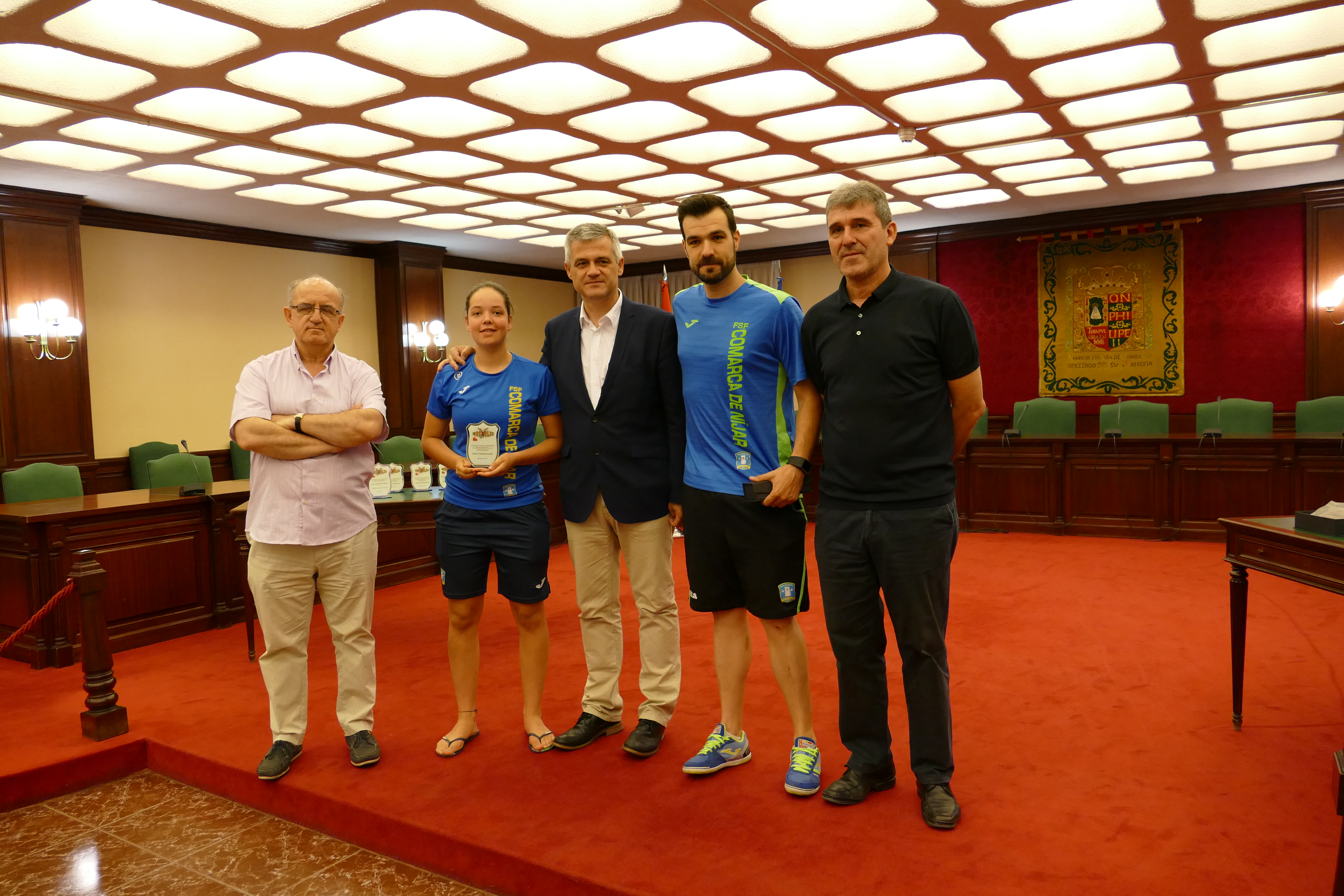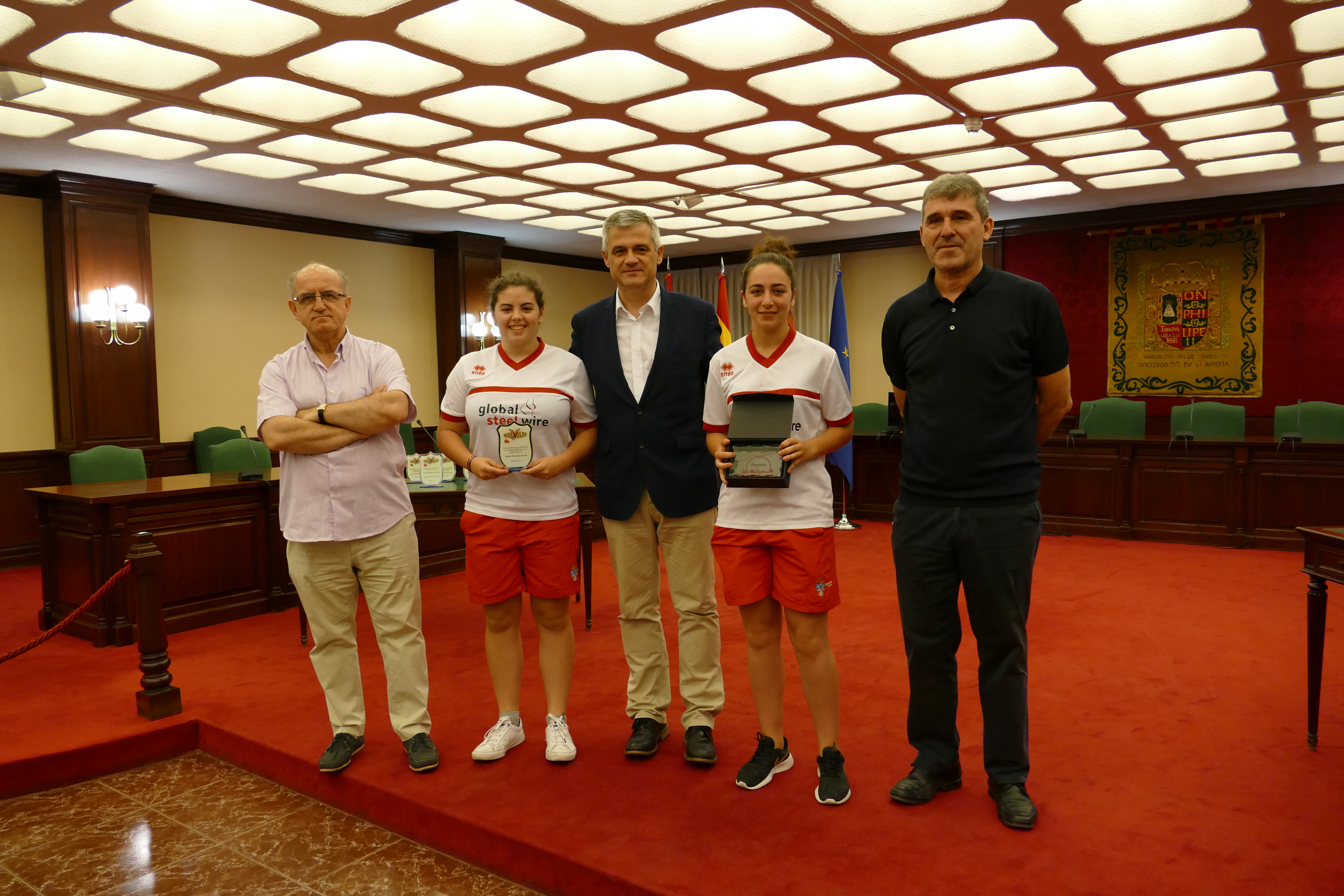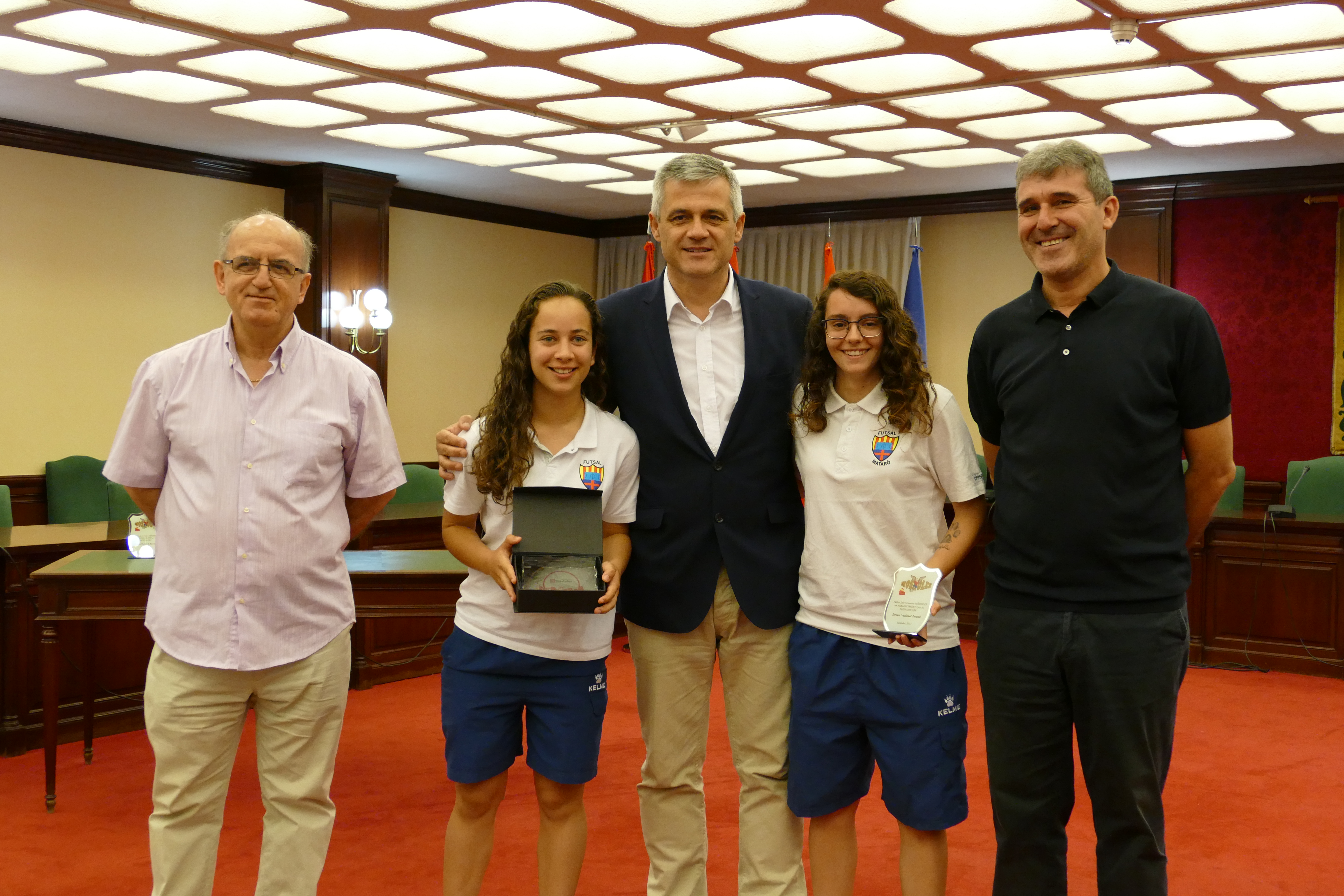 El alcalde de Móstoles, David Lucas, y el concejal de Deportes, Agustín Martín, han recibido esta mañana, en el salón de plenos del Ayuntamiento de Móstoles, a representantes de los ocho equipos de fútbol sala que participan en el Torneo Nacional de esta disciplina, organizado por el club de Fútbol Sala Femenino de la localidad (FSF), la Real Federación de Fútbol y la Federación Madrileña de Fútbol Sala.