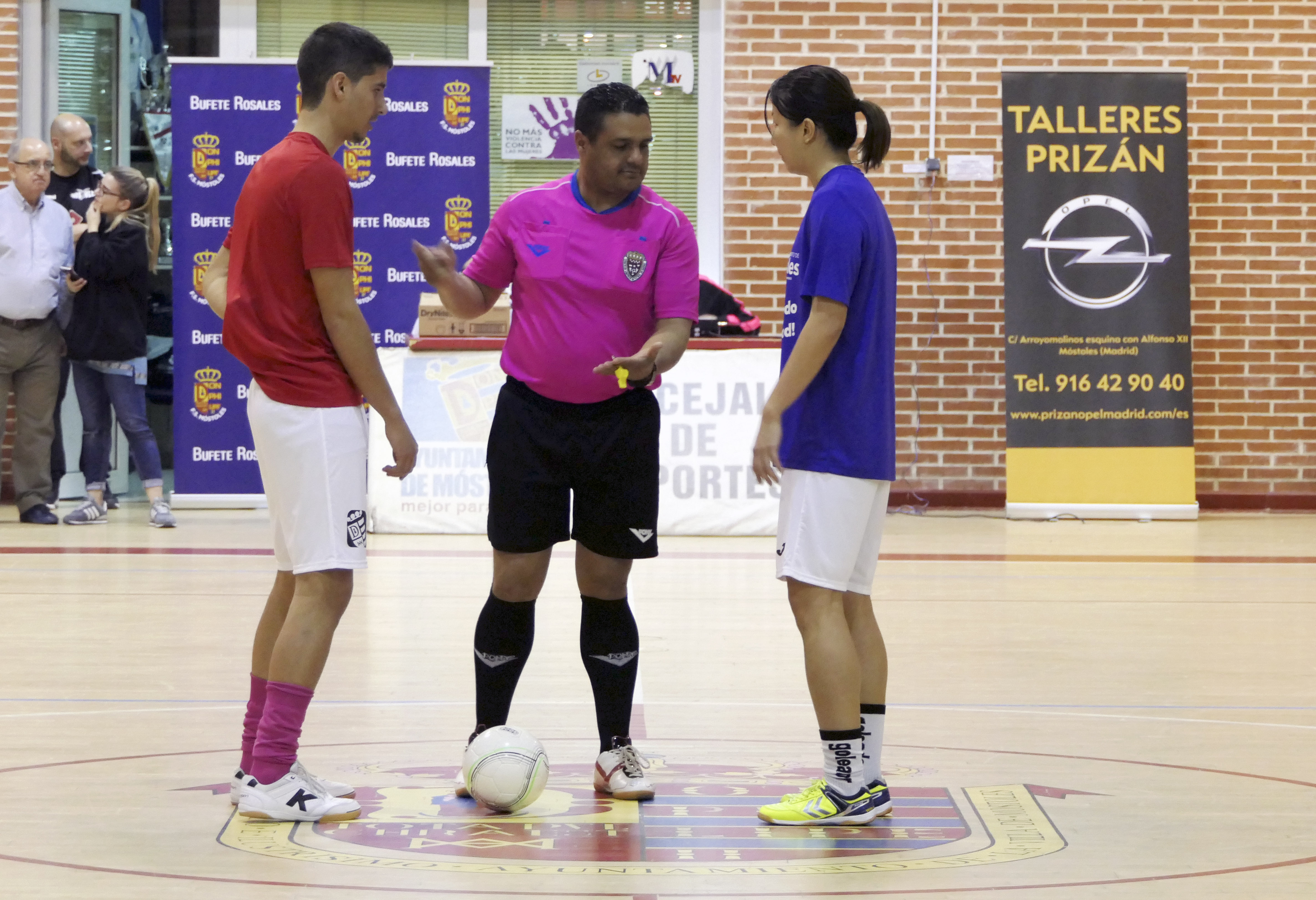 Imagen en alta resolución. Este enlace se abrirá mediante lightbox, puede haber un cambio de contextoLa alcaldesa de Móstoles, Noelia Posse, junto con la concejala de Igualdad, Sanidad y Mayores, Ana María Rodrigo, asistieron al encuentro disputado entre el FSF Móstoles y el Ciudad de Móstoles FS organizado con motivo del Día Internacional de la Mujer del