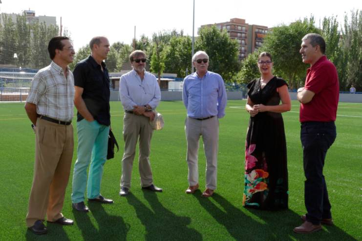 La Alcaldesa supervisa la remodelación del campo de fútbol de césped del Polideportivo Andrés Torrejón