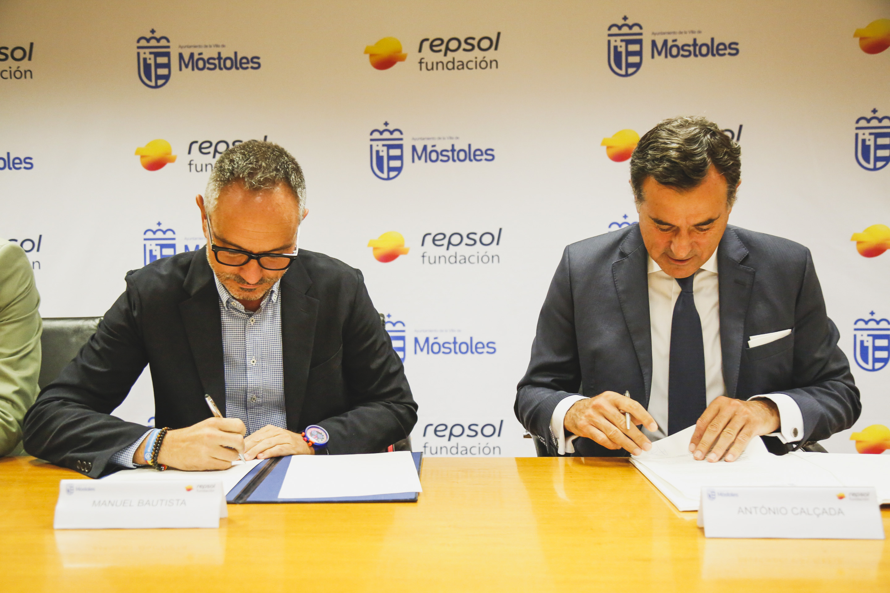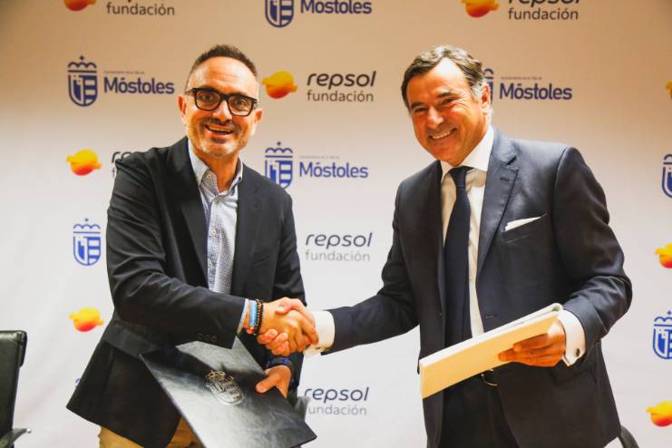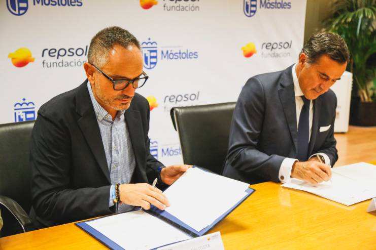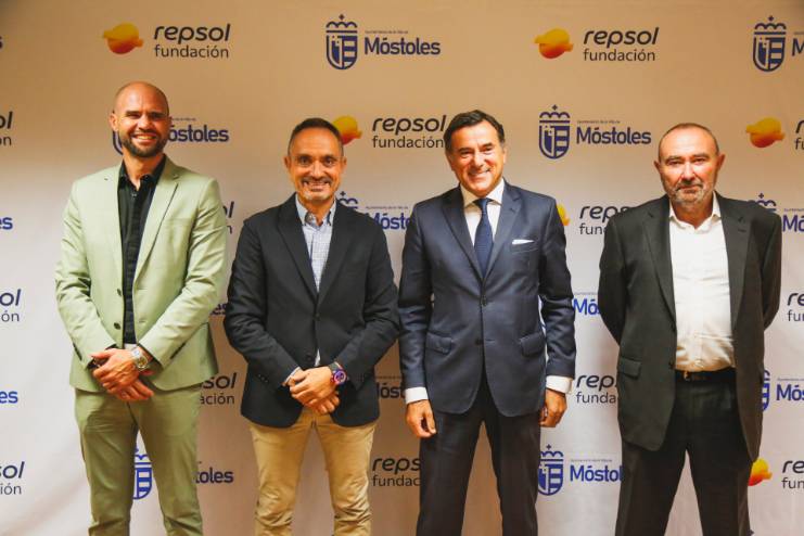 A la firma del convenio, que ha tenido lugar hoy, han participado el alcalde de Móstoles, Manuel Bautista, el concejal de Deportes y Sanidad, Ángel Álvarez, el director general de Fundación Repsol, António Calçada, y el CTO de Tecnología y Corporate Venturing de Repsol Technology Lab, Fernando Ruiz.