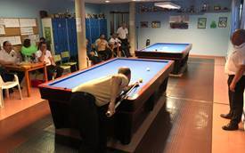 Imagen en alta resolución. Este enlace se abrirá mediante lightbox, puede haber un cambio de contextoDurante la segunda jornada del XXXV campeonato nacional de liga de billar a 3 bandas se disputó, el pasado sábado 19 de octubre, el clásico derbi entre el visitante Club Billar Móstoles y el local Billar Kalima Rivas. La jornada terminó con un claro 0-8 a favor de los jugadores mostoleños, lo que les vale para reafirmar su liderato en la división de honor de billar a 3 bandas.