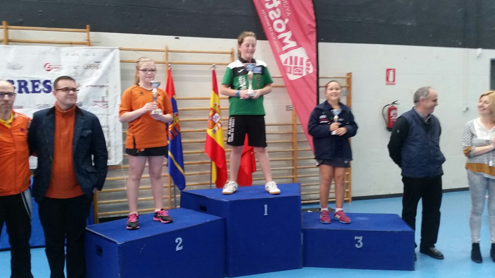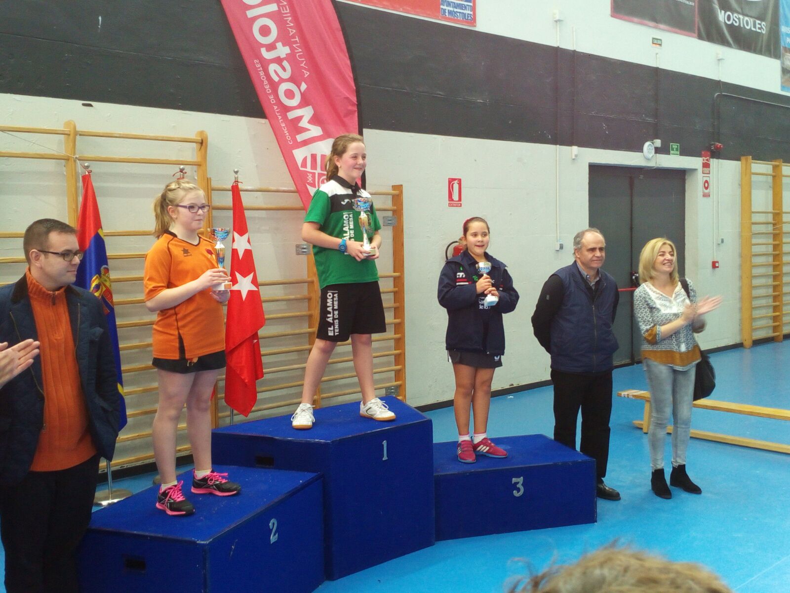 La entrega de Trofeos estuvo a cargo de Agustín Martín Cortes concejal de Deportes, Isabel Cruceta Serrano, concejala de Educación, Carlos Rodriguez del Olmo, coordinador de Deportes, y Ángel Rodríguez Río, presidente de la Federación Madrileña de Tenis de Mesa.
