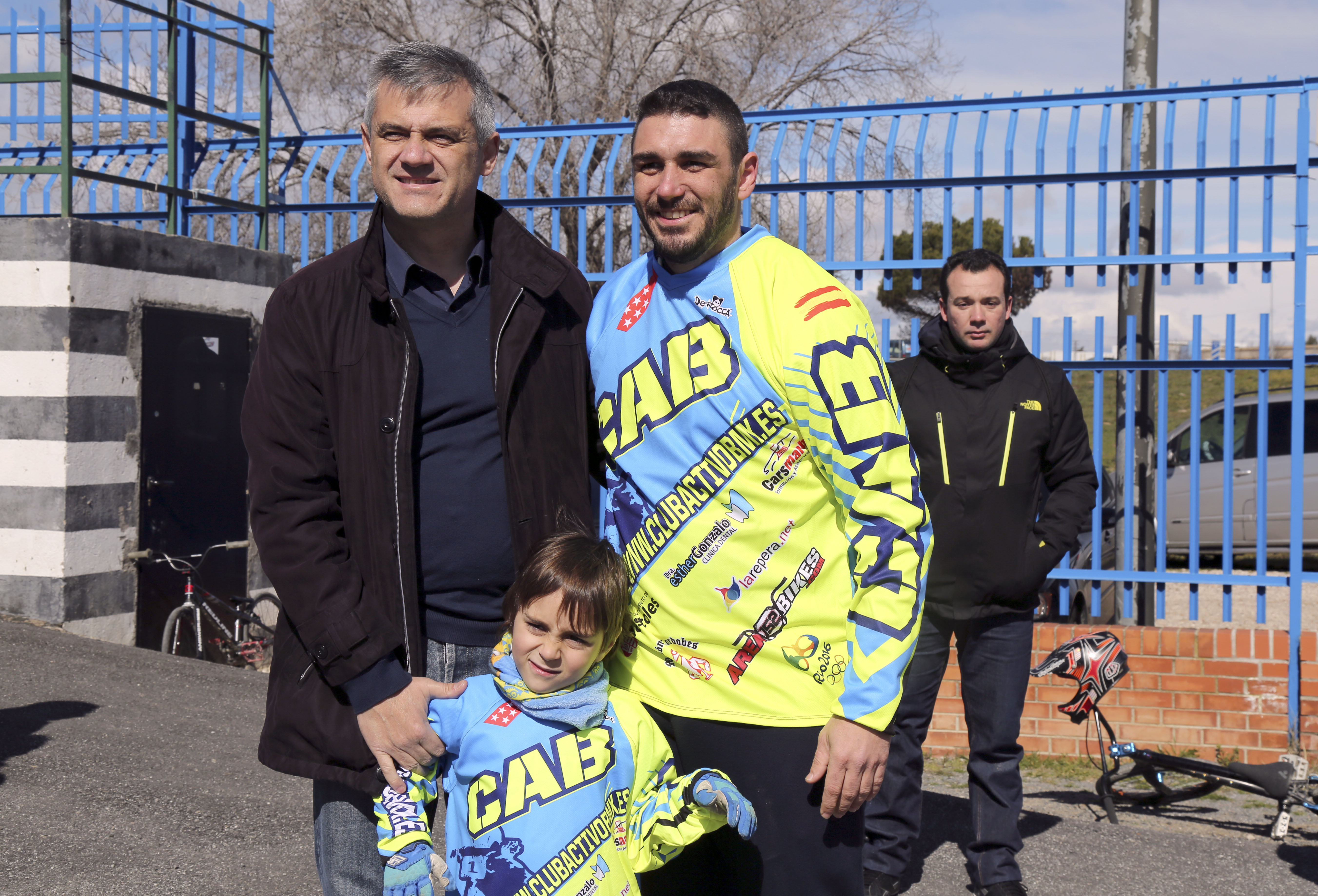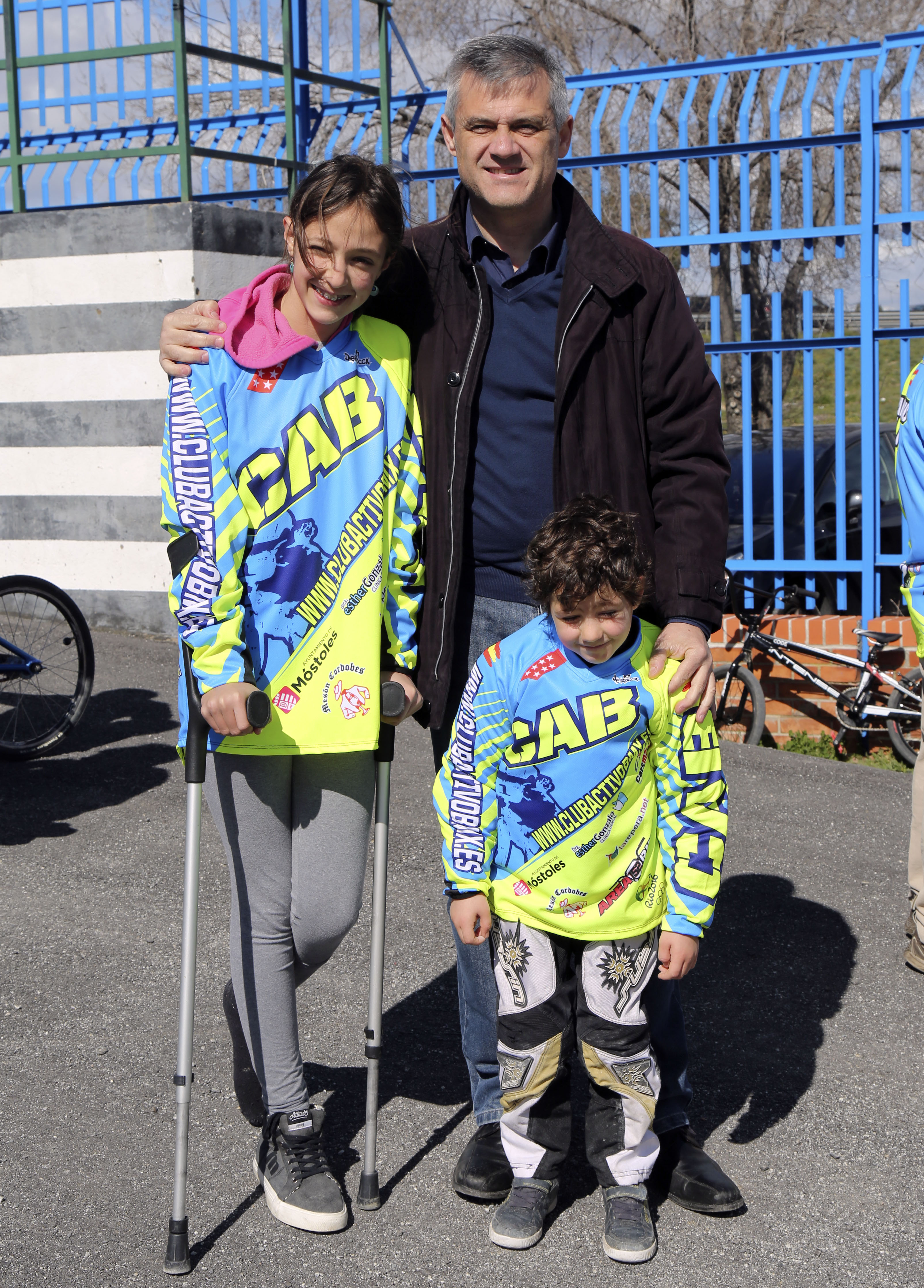 El primer edil de Móstoles, David Lucas, y el concejal de Deportes, Agustín Martín, asistieron a la presentación de la nueva equipación del Club Activo BMX.
