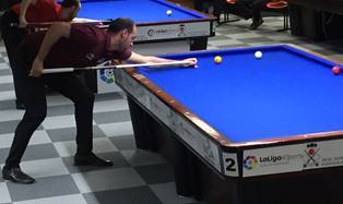Los visitantes mostoleños mostraron de nuevo su gran momento de forma, venciendo holgadamente en todos los encuentros y logrando las mayores series de la competición nacional de este fin de semana (Rubén Legazpi, 12 carambolas de serie) y manteniendo el mejor promedio global nacional de la competición(1,338).