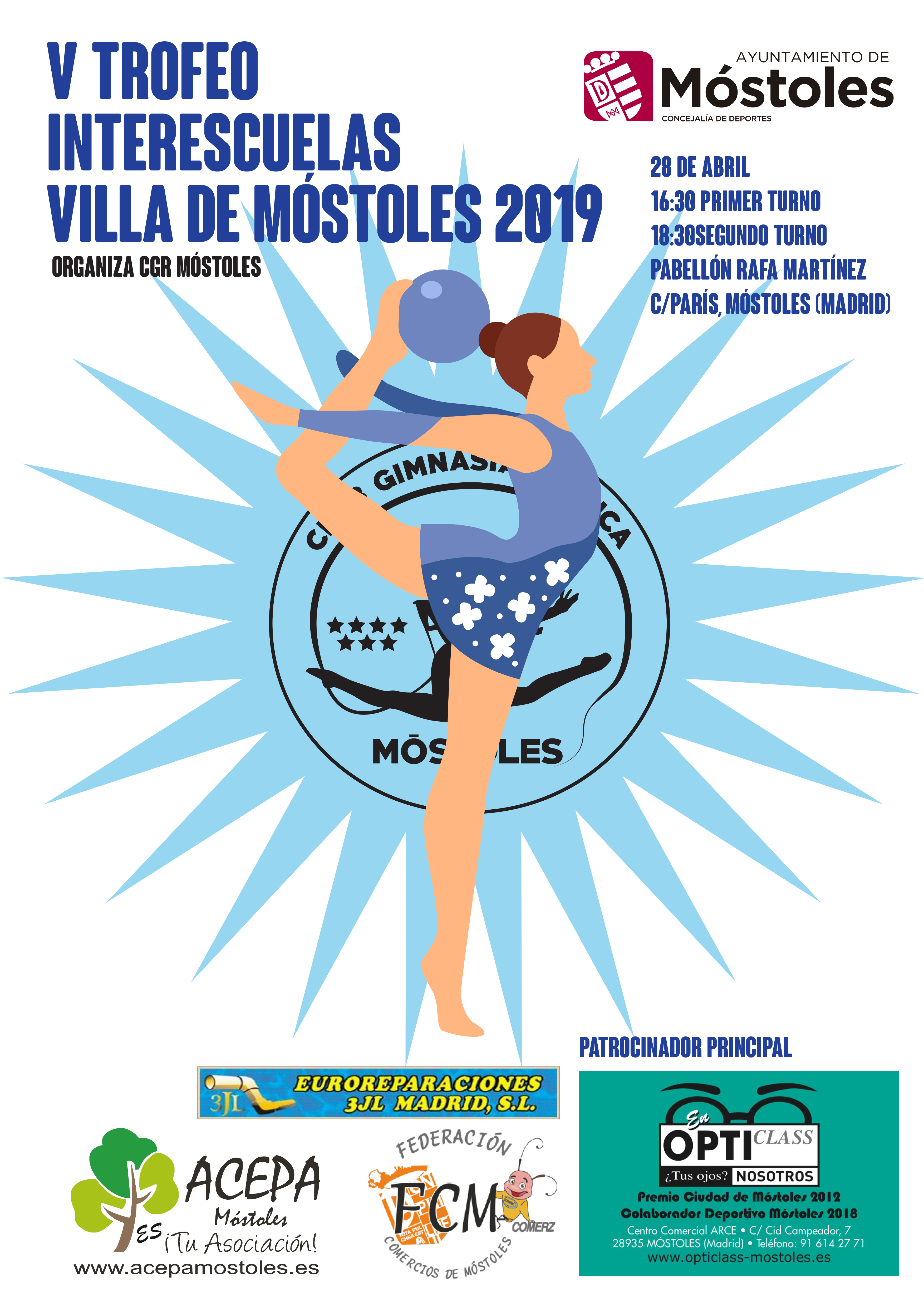 En Jornada de tarde se celebrará el V Trofeo Interescuela Villa de Mostoles 2019. En esta ocasión será el turno de 250 gimnastas de las mejores Escuelas de Iniciación de la CCMM. La Escuela de Iniciación del CGR Mostoles es la actual Campeona de la CCMM, y este año va por el mismo camino después de los resultados obtenidos en las fases locales. A las 16:30 horas dará comienzo la competición.