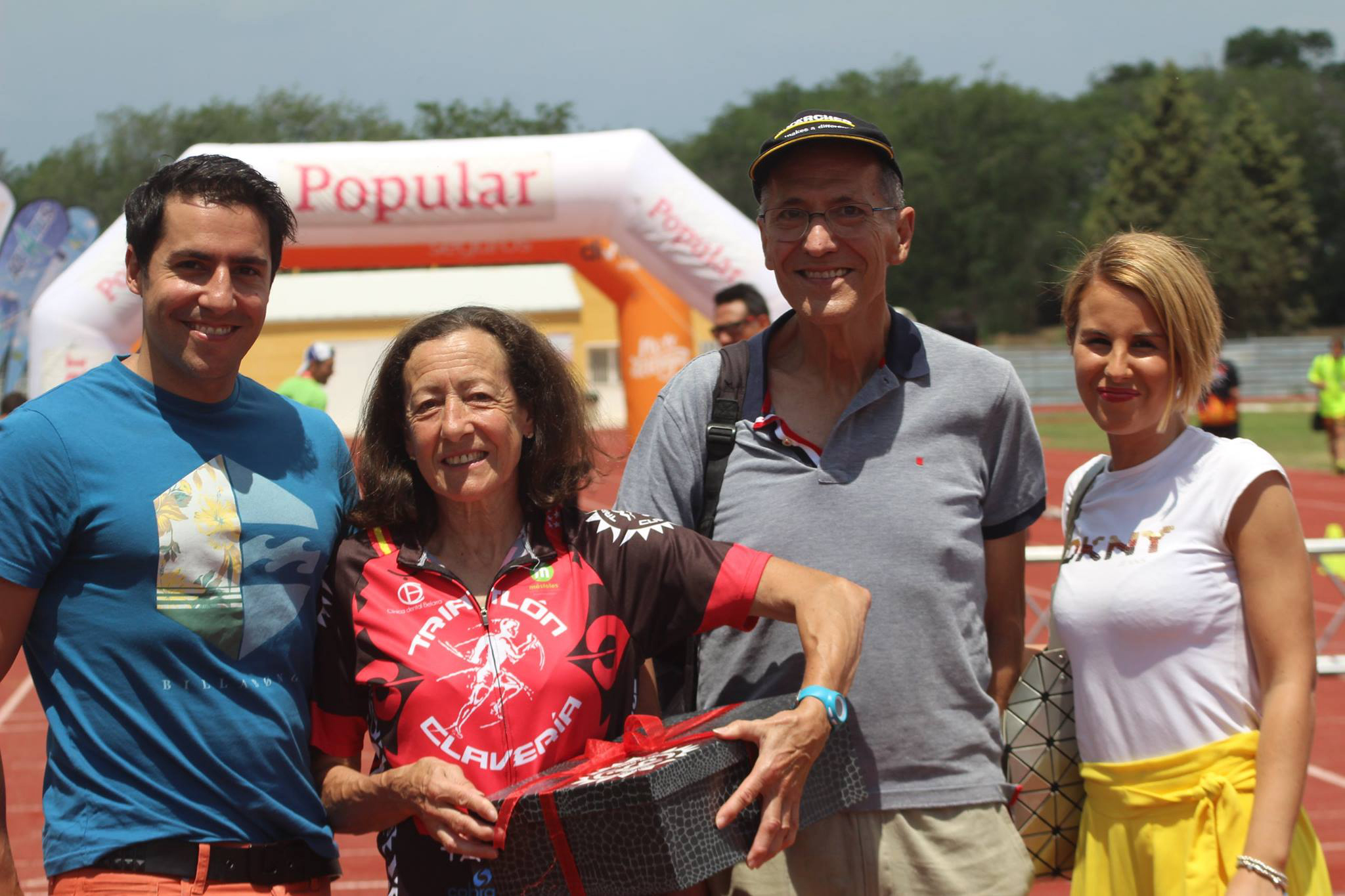 Este año, la prueba ha rendido un homenaje a la extraordinaria trayectoria deportiva de Consuelo Alonso, ejemplo de toda una vida dedicada al deporte y primera mujer en formar parte del Club Triatlón Clavería de Móstoles.