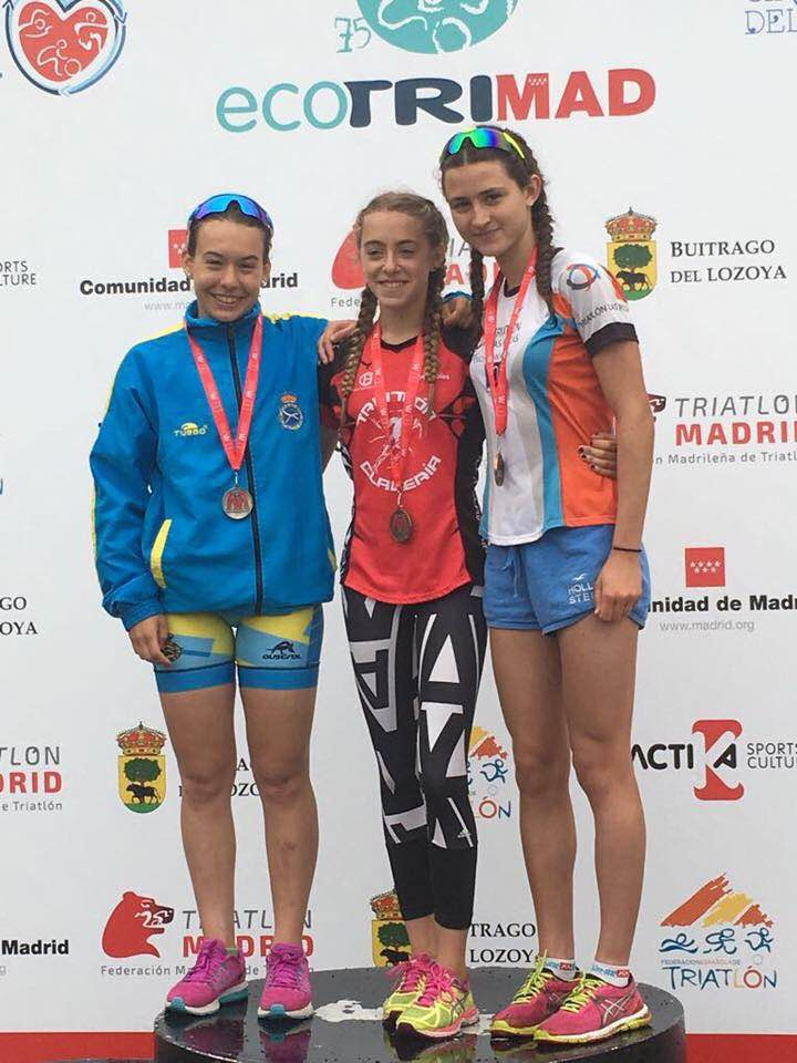 En categoría cadete femenina destaca el primer puesto logrado por Iria Galán Celada que finalizó la prueba en 21:18. En cadete masculino consiguieron el segundo y tercer puesto los triatletas del club Aitor Diaz Hernando, e Ignacio Madroño Gómez, entrando en meta a la vez completando el Acuatlón en un tiempo de 18:20.