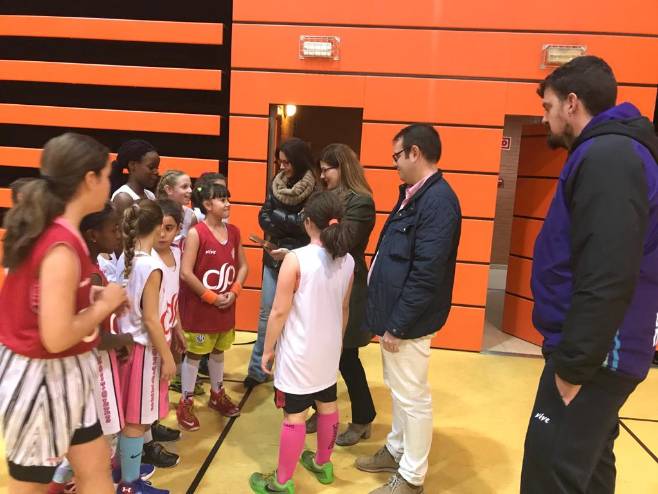 La Alcaldesa Noelia Posse, el Concejal de Deportes, Carlos Rodríguez, y la Concejala de Presidencia, Rebeca Prieto, visitaron ayer las instalaciones del polideportivo los Rosales. Allí pudieron presenciar uno de los entrenamientos de los equipos femeninos de benjamines e infantiles del CB Ciudad de Móstoles. La pasión en la pista, el espíritu de sacrificio, la disciplina y el trabajo en equipo son algunos de los valores que sus entrenadores les inculcan en cada uno de los entrenamientos. Unos valores que no solo aplican en la pista sino también en su vida diaria.