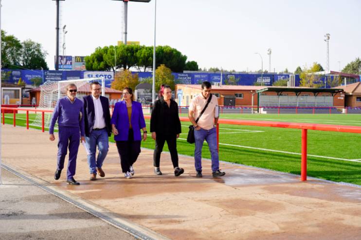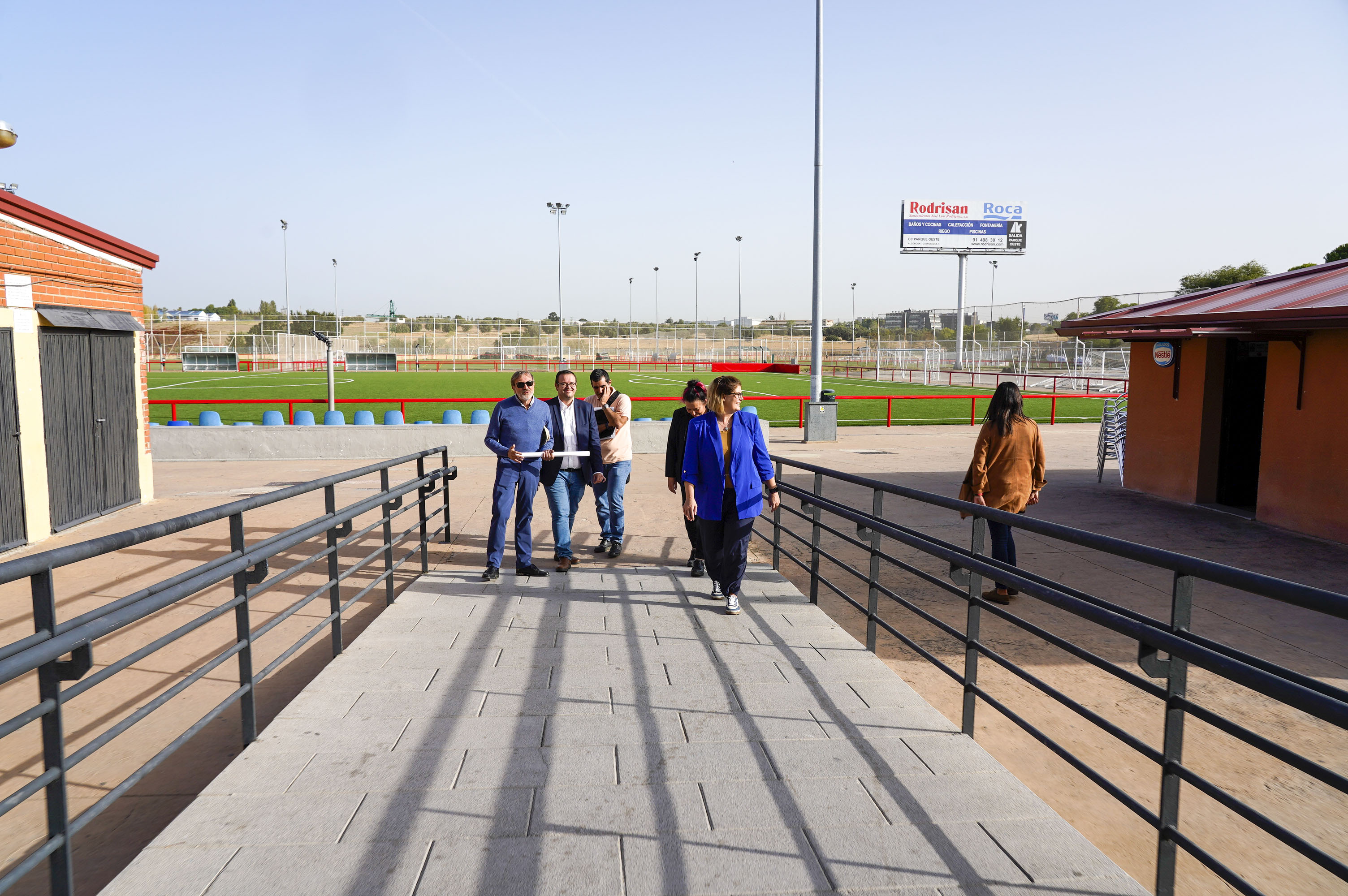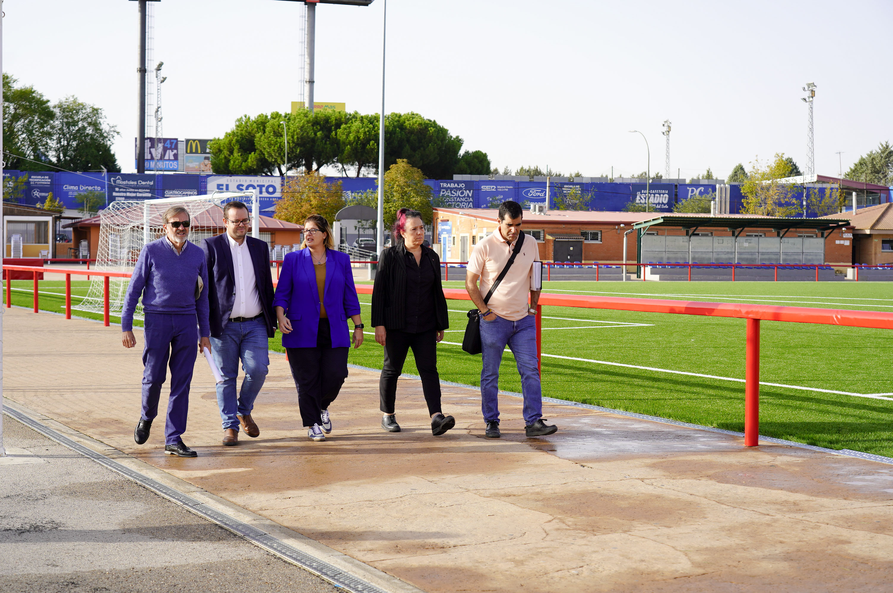 La Alcaldesa, Noelia Posse, acompañada del Concejal de Deportes, Carlos Rodríguez del Olmo, y la Portavoz de Podemos, Mónica Monterreal, ha visitado hoy los trabajos de reparación y remodelación del complejo deportivo que han contado con un presupuesto de 1,4 millones de euros y han afectado a unos 27.124,5 m² de terreno.