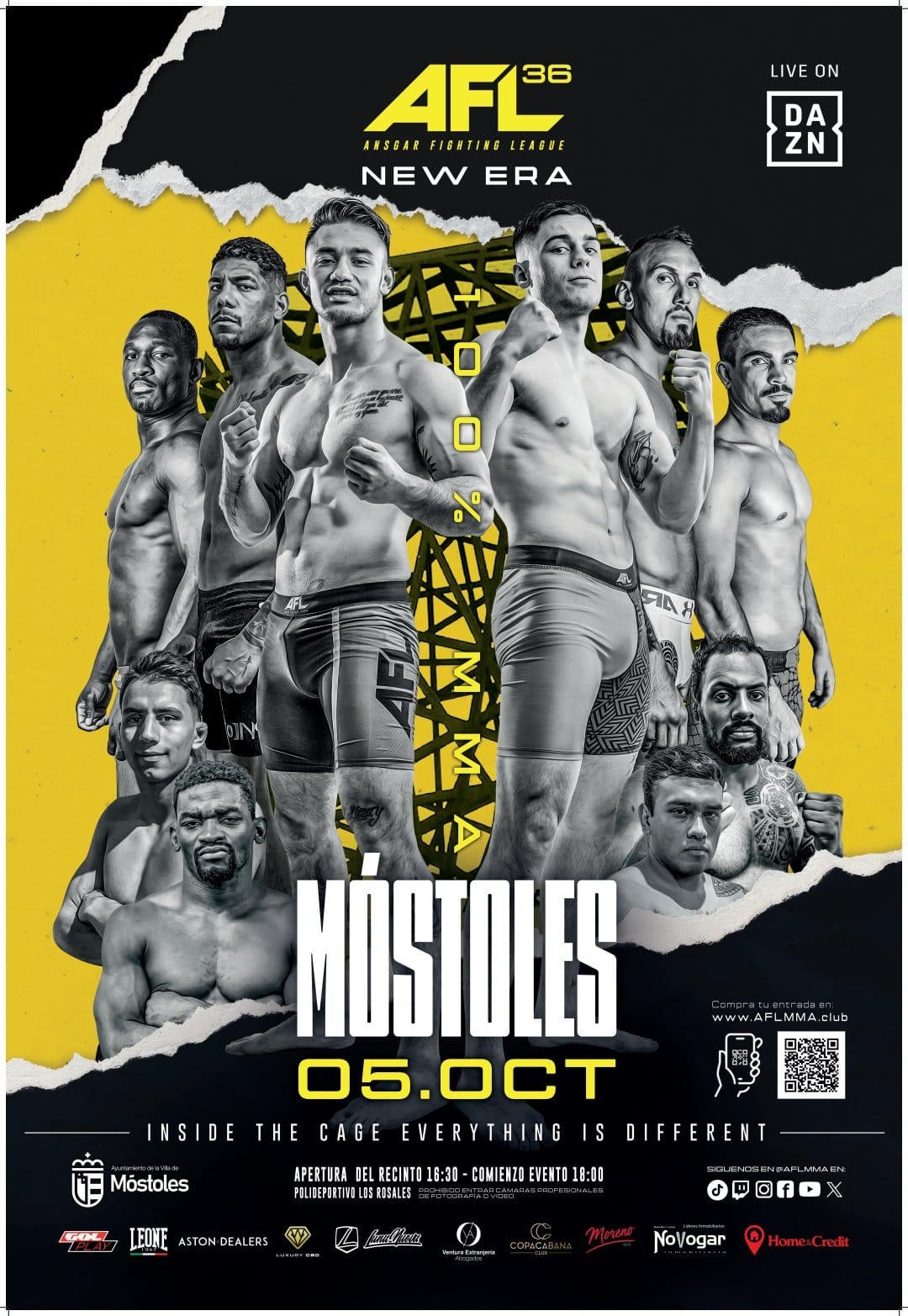 - El Ayuntamiento de Móstoles, a través de la Concejalía de Deportes y Sanidad, en colaboración con la AFL (Ansgar Fighting League), trae al municipio uno de los eventos más importantes de Artes Marciales Mixtas (MMA).